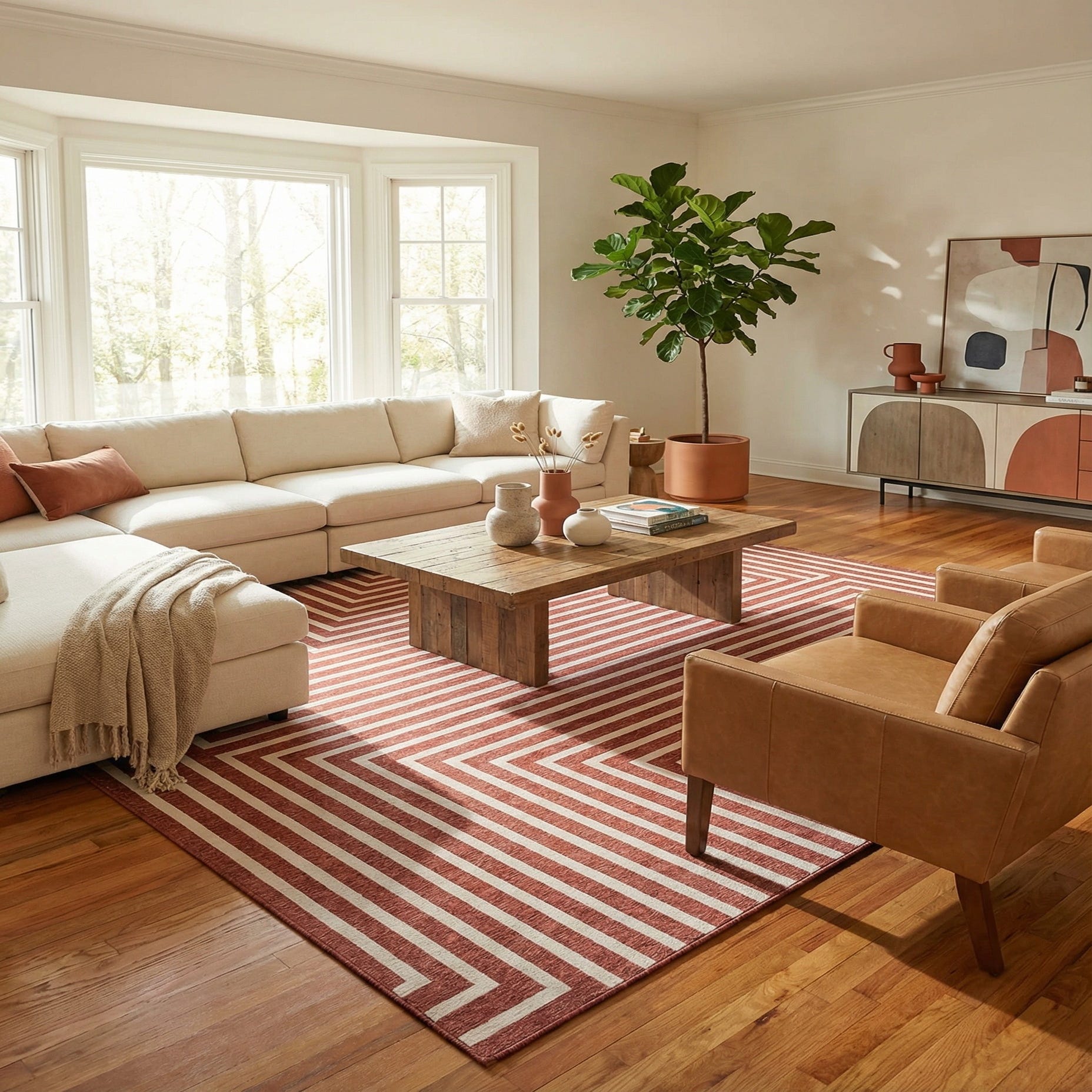 Primary color is Rust Red. Colors in this rug include: Rust Red, Ivory.