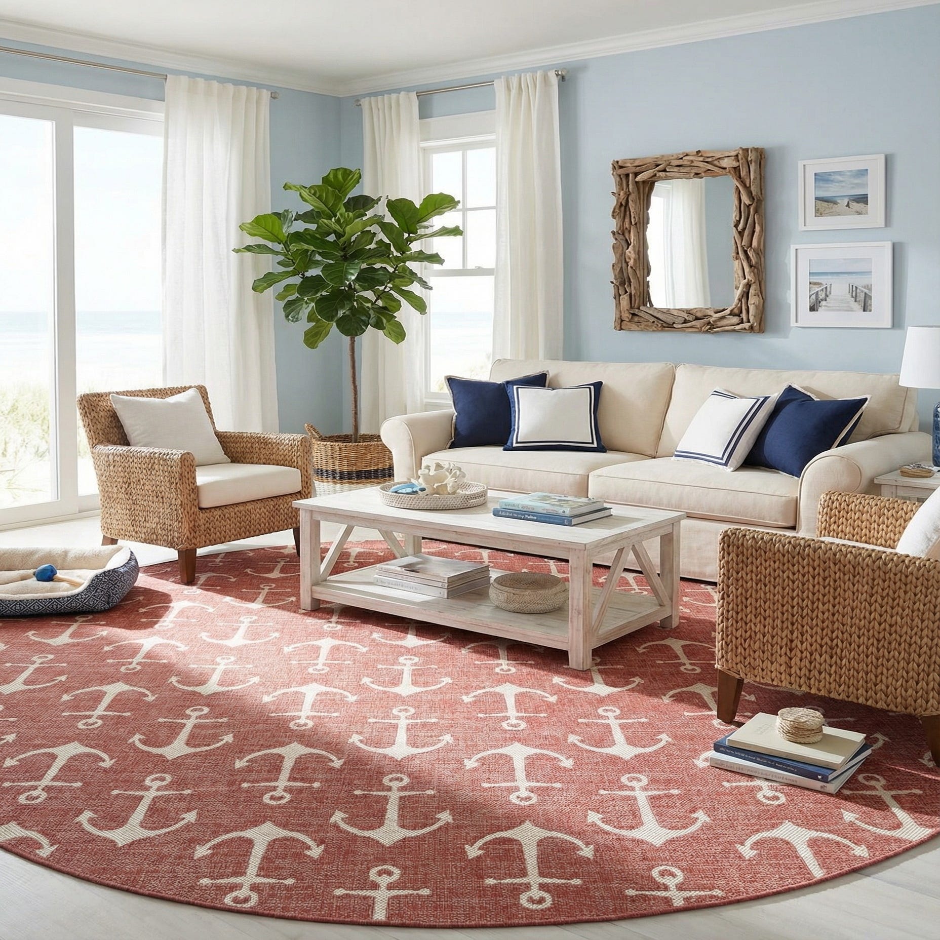 13' x 13' Washable Coastal Indoor / Outdoor Round Rug