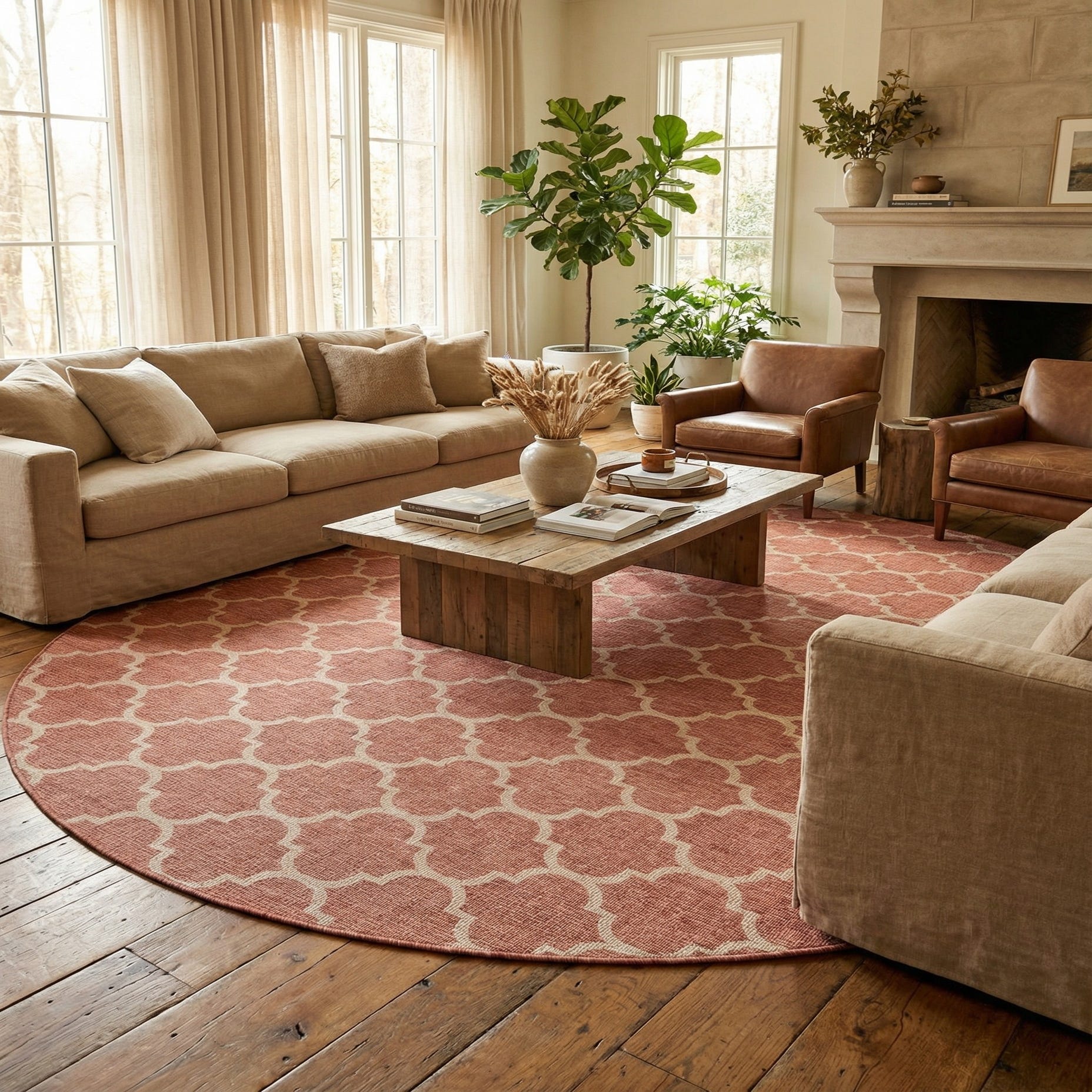 Primary image 13' x 13'  Washable Trellis Indoor / Outdoor Round Rug