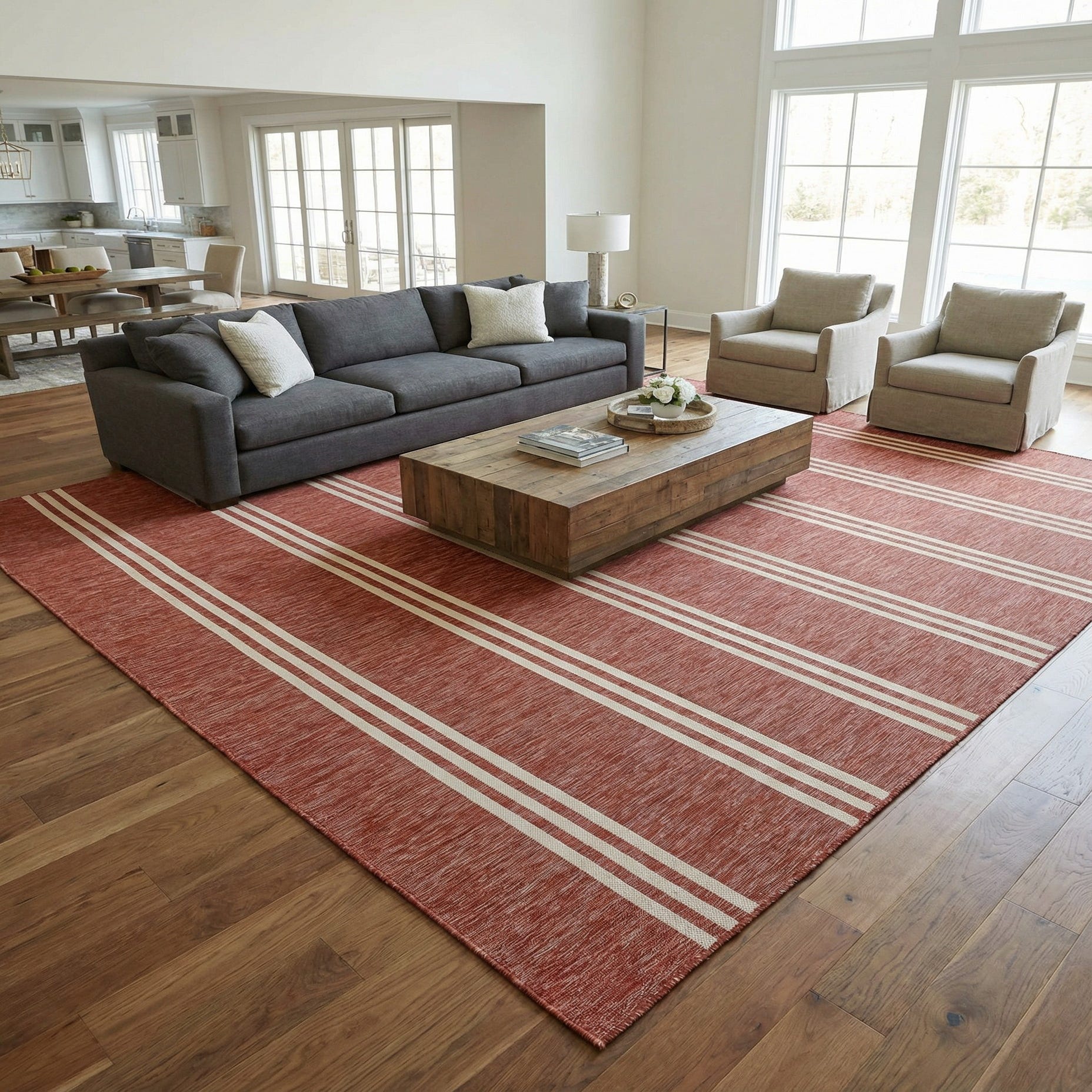 Primary color is Rust Red. Colors in this rug include: Rust Red, Ivory.