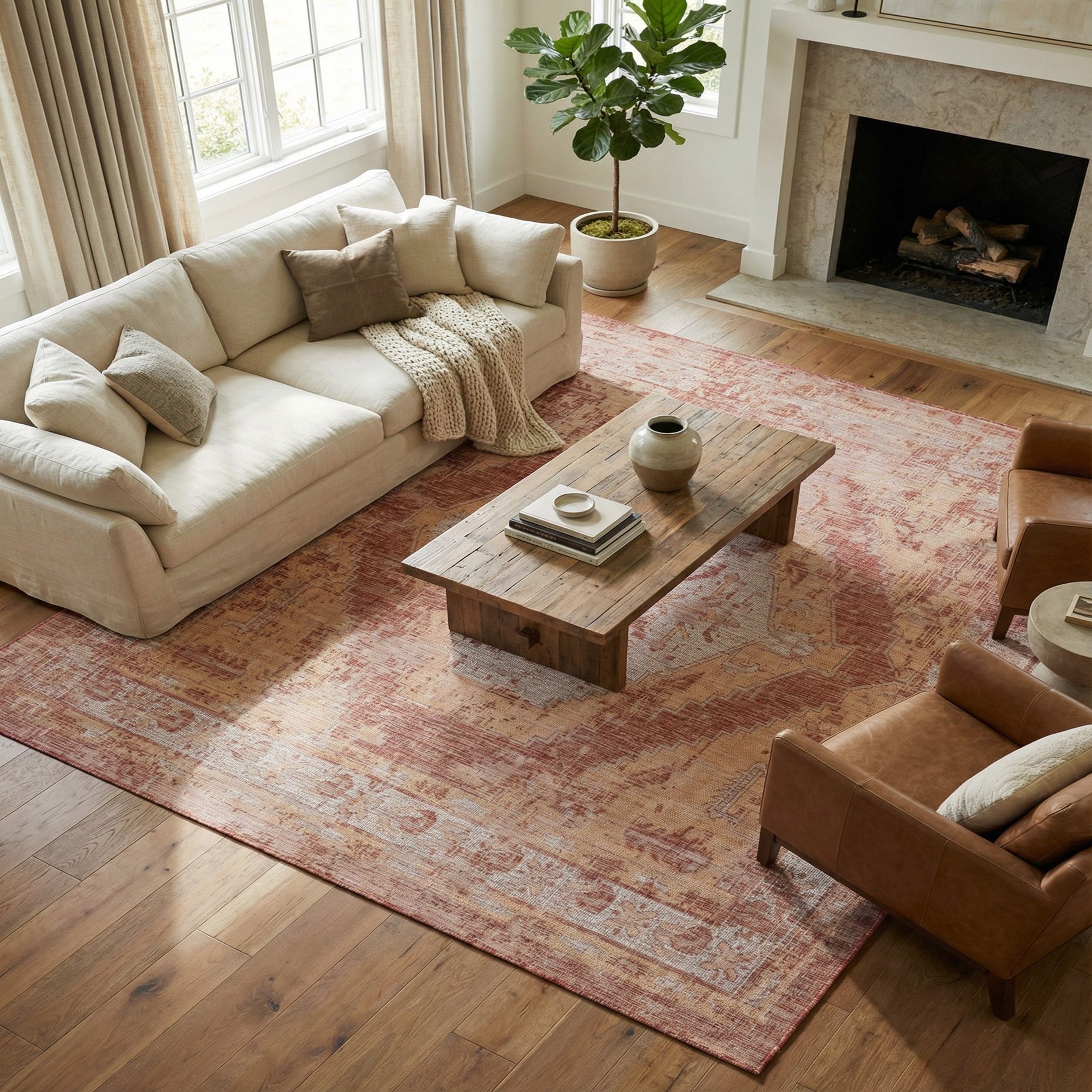 Primary color is Rust Red. Colors in this rug include: Rust Red, Beige, Ivory.