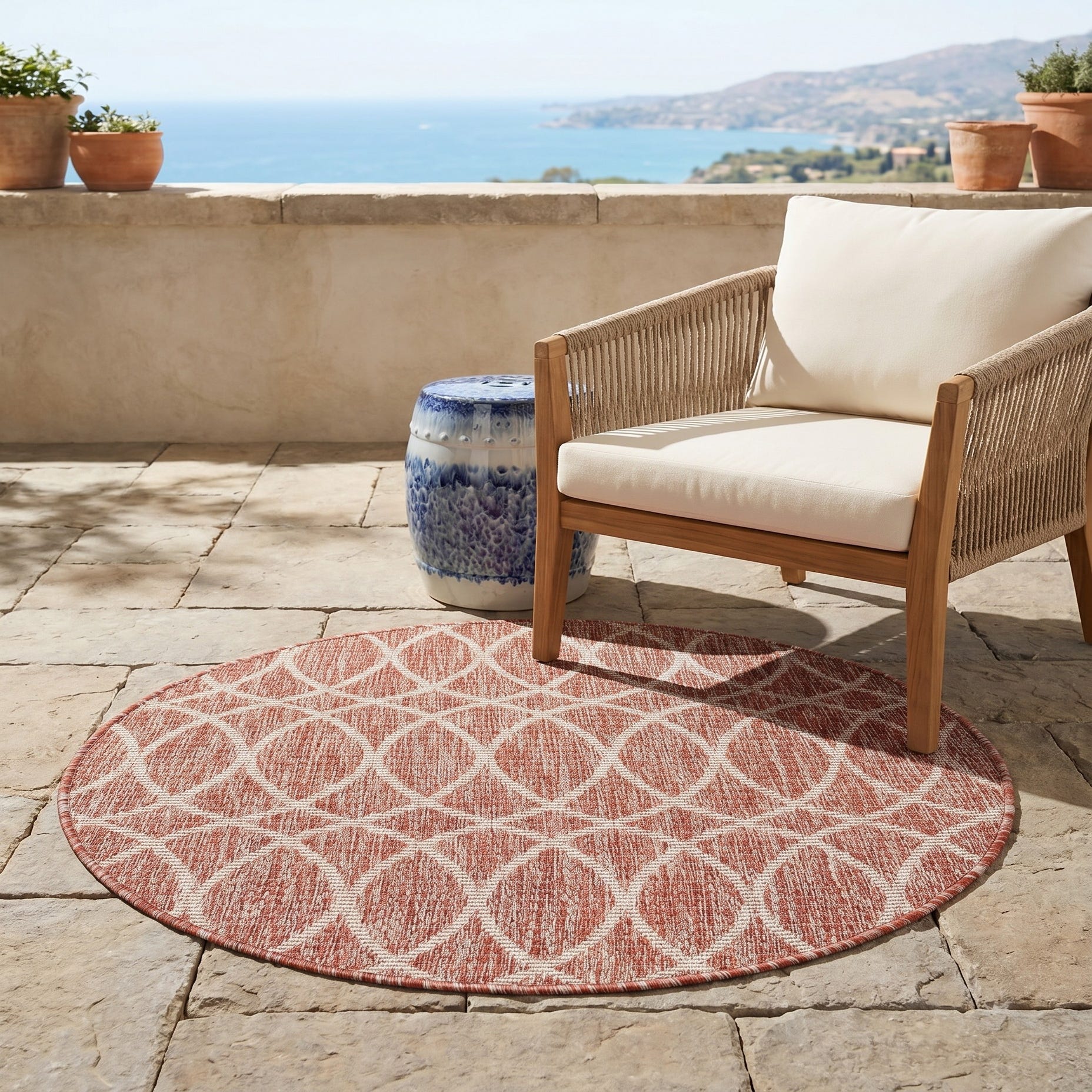 3' x 3' Easy-Clean Trellis Indoor / Outdoor Round Rug