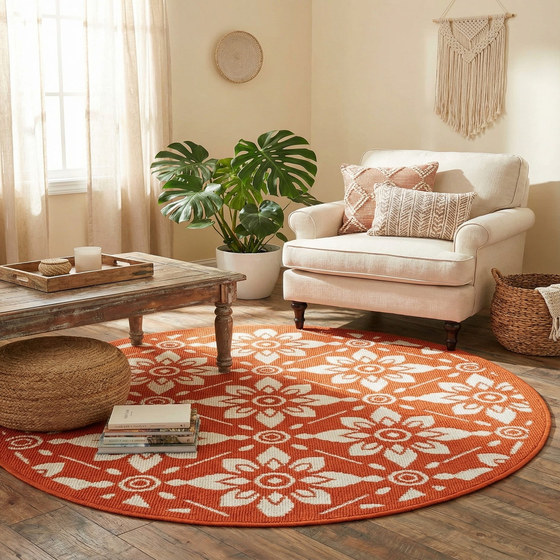 3' x 3' Washable Trellis Indoor / Outdoor Round Rug