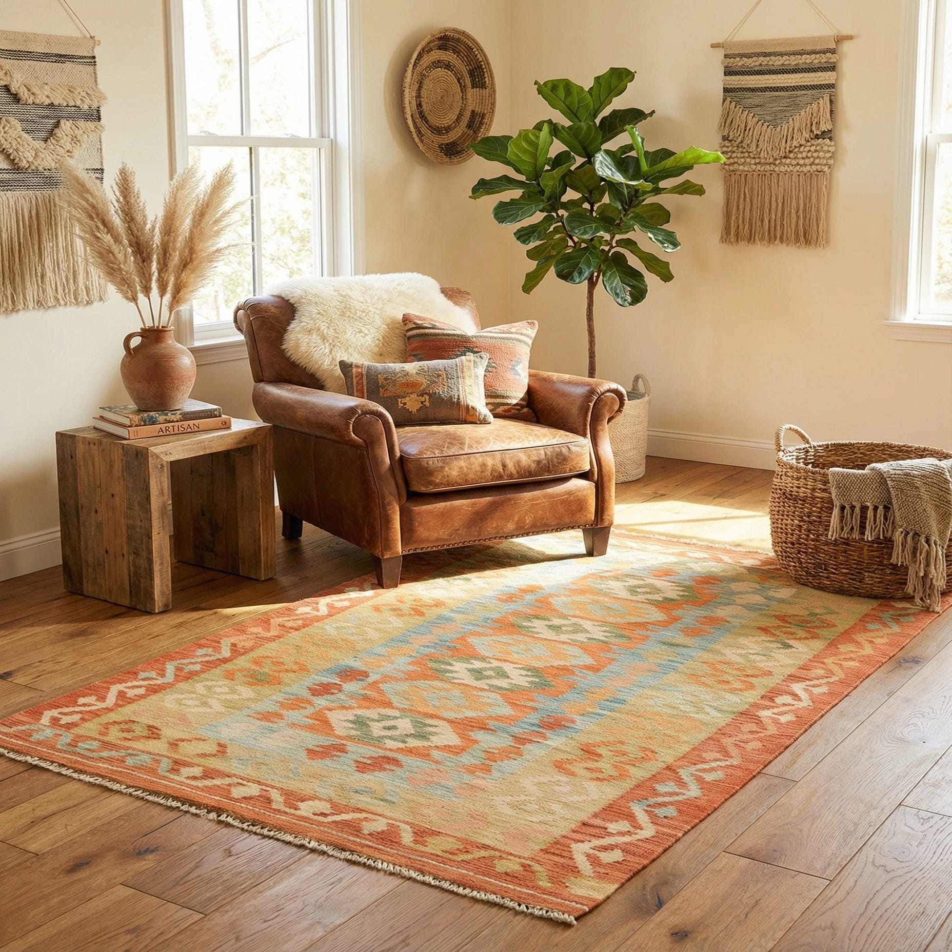 2' 9 x 4' 4 Hand Woven Kilim Waziri Wool Rug