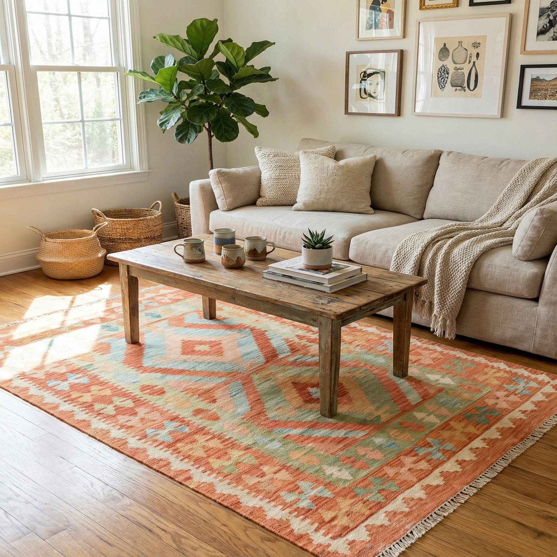 3' 2 x 5' Hand Woven Kilim Waziri Wool Rug