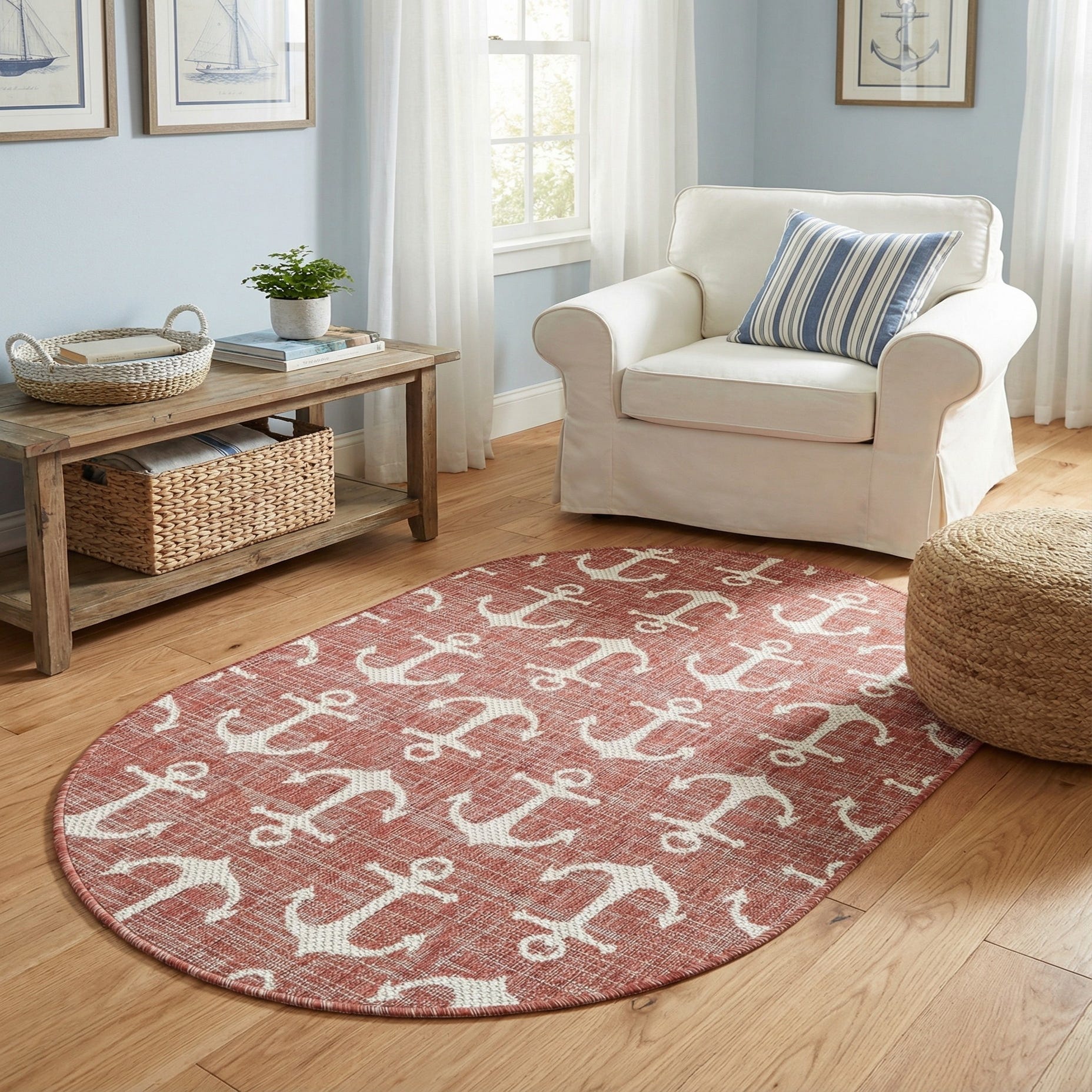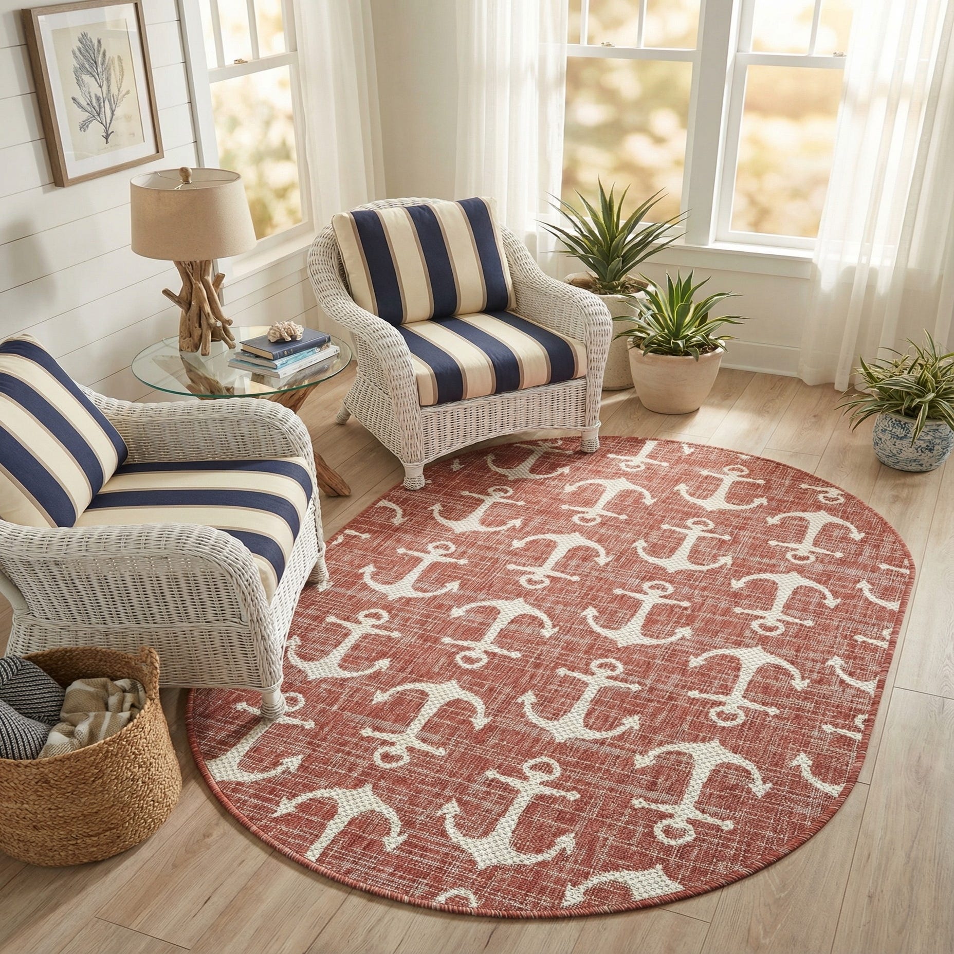 3' x 5' 3 Washable Coastal Indoor / Outdoor Oval Rug