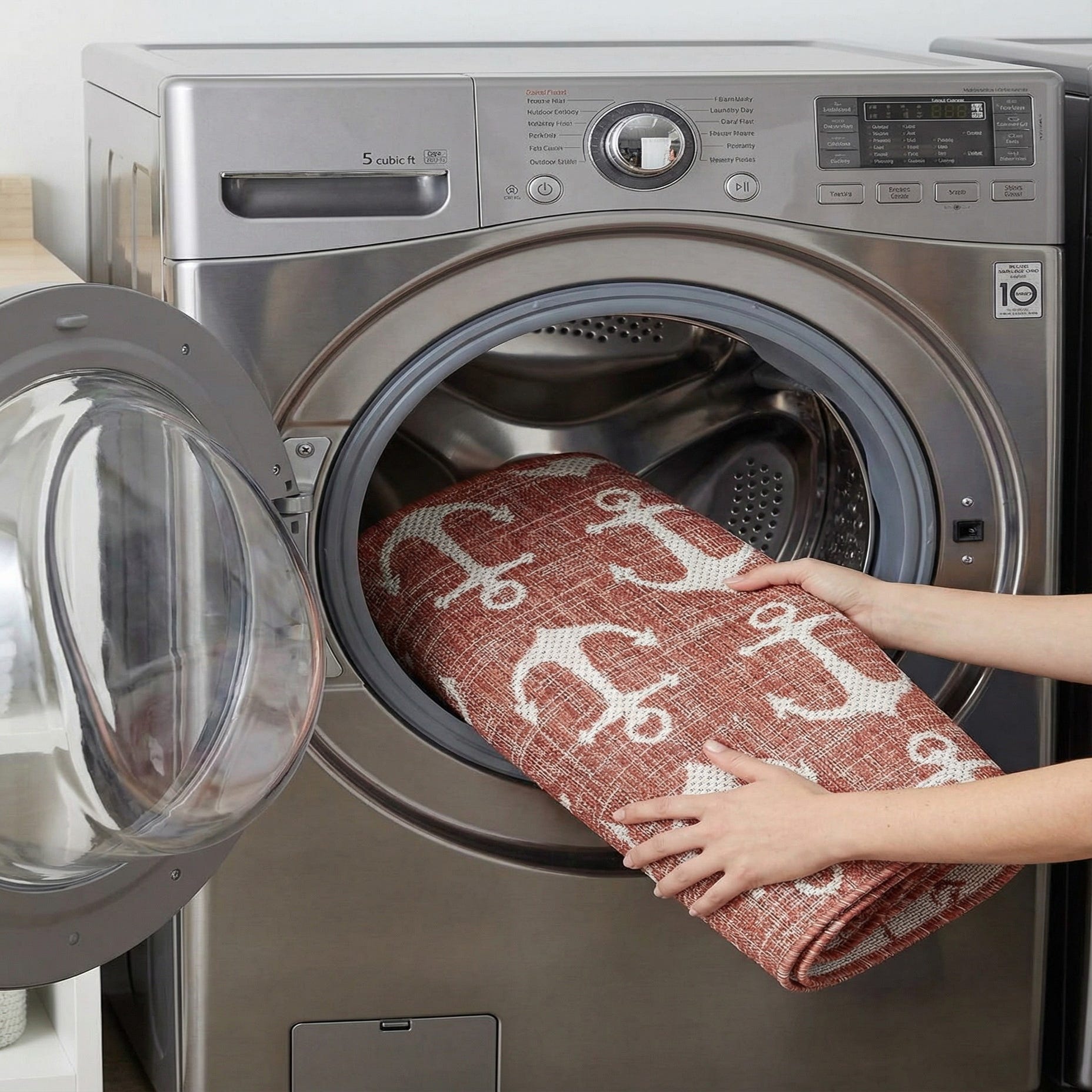 Detail image of 3' x 5' 3  Washable Coastal Indoor / Outdoor Oval Rug