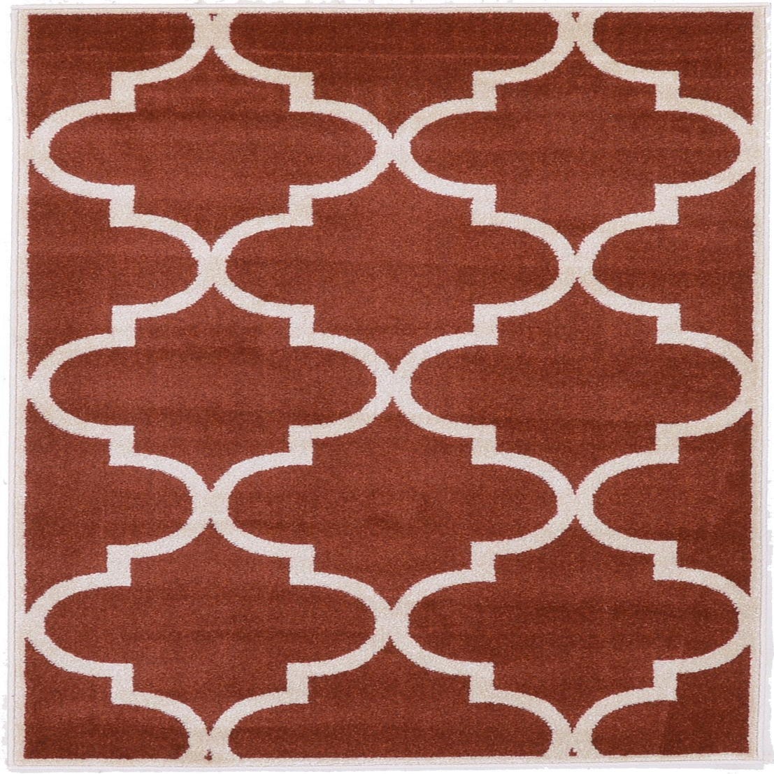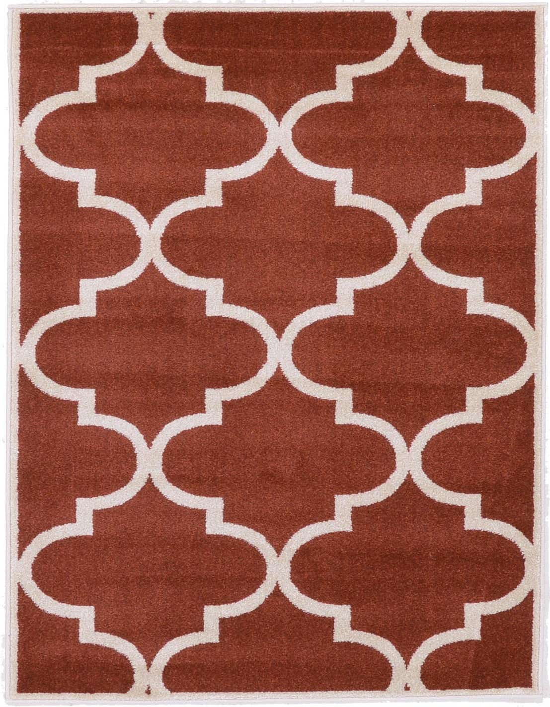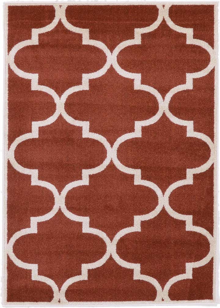 Primary color is Rust Red. Colors in this rug include: Rust Red, Beige.