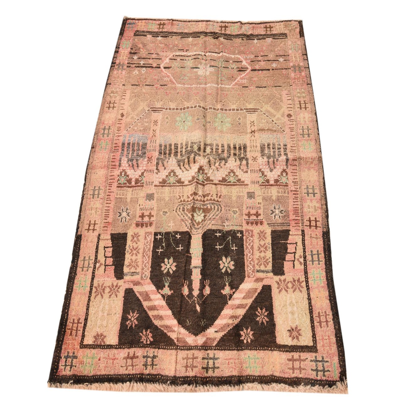 This Persian Ultra Vintage rug is an antique Persian Rug that has been washed, over-dyed, and then shaved down to a low pile. Look at the detail pictures to fully appreciate the uniqueness of this piece.