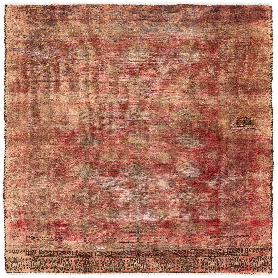 This Persian Ultra Vintage rug is an antique Persian Rug that has been washed, over-dyed, and then shaved down to a low pile. Look at the detail pictures to fully appreciate the uniqueness of this piece.