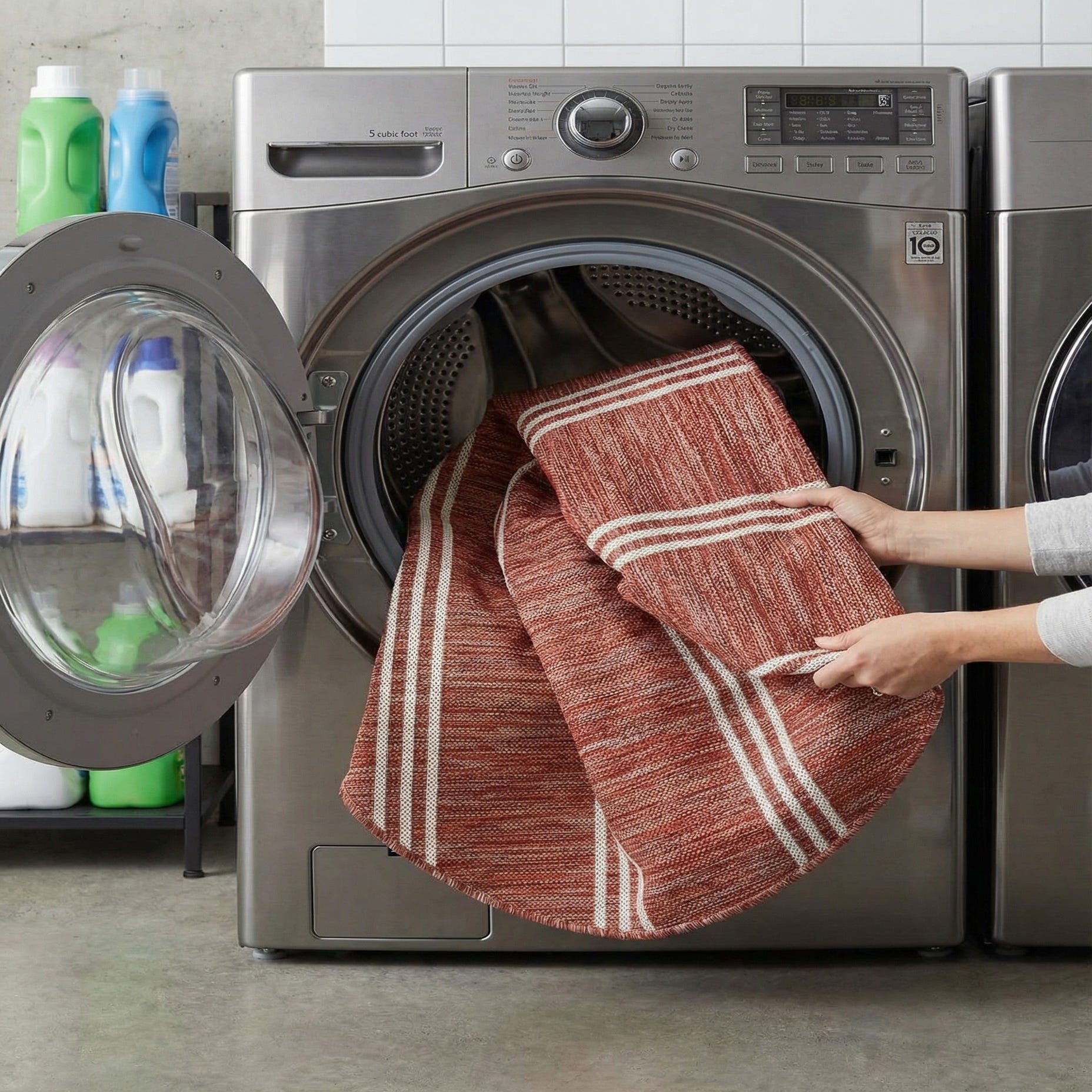 Primary color is Rust Red. Colors in this rug include: Rust Red, Ivory.