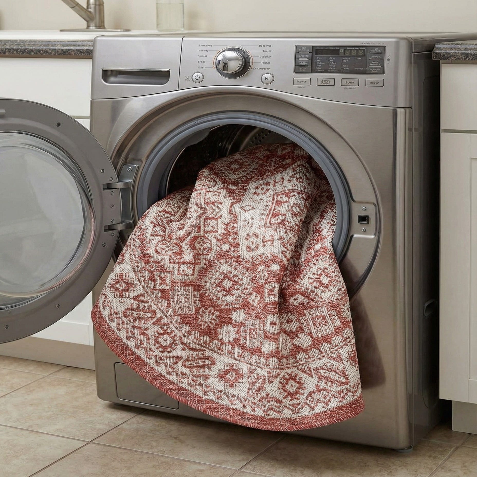4' x 4' Washable Aztec Indoor / Outdoor Round Rug