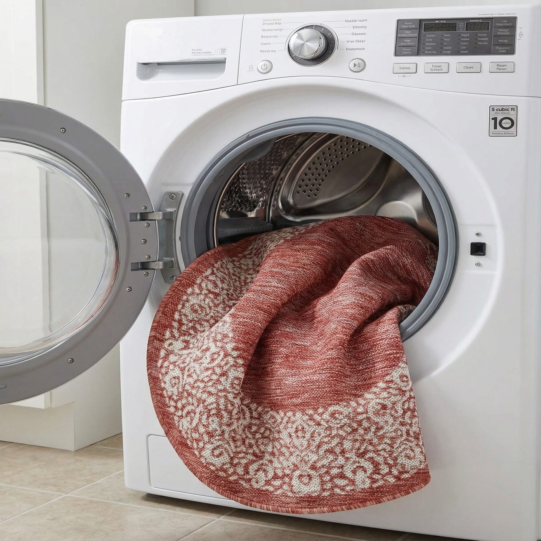 4' x 4' Washable Border Indoor / Outdoor Round Rug