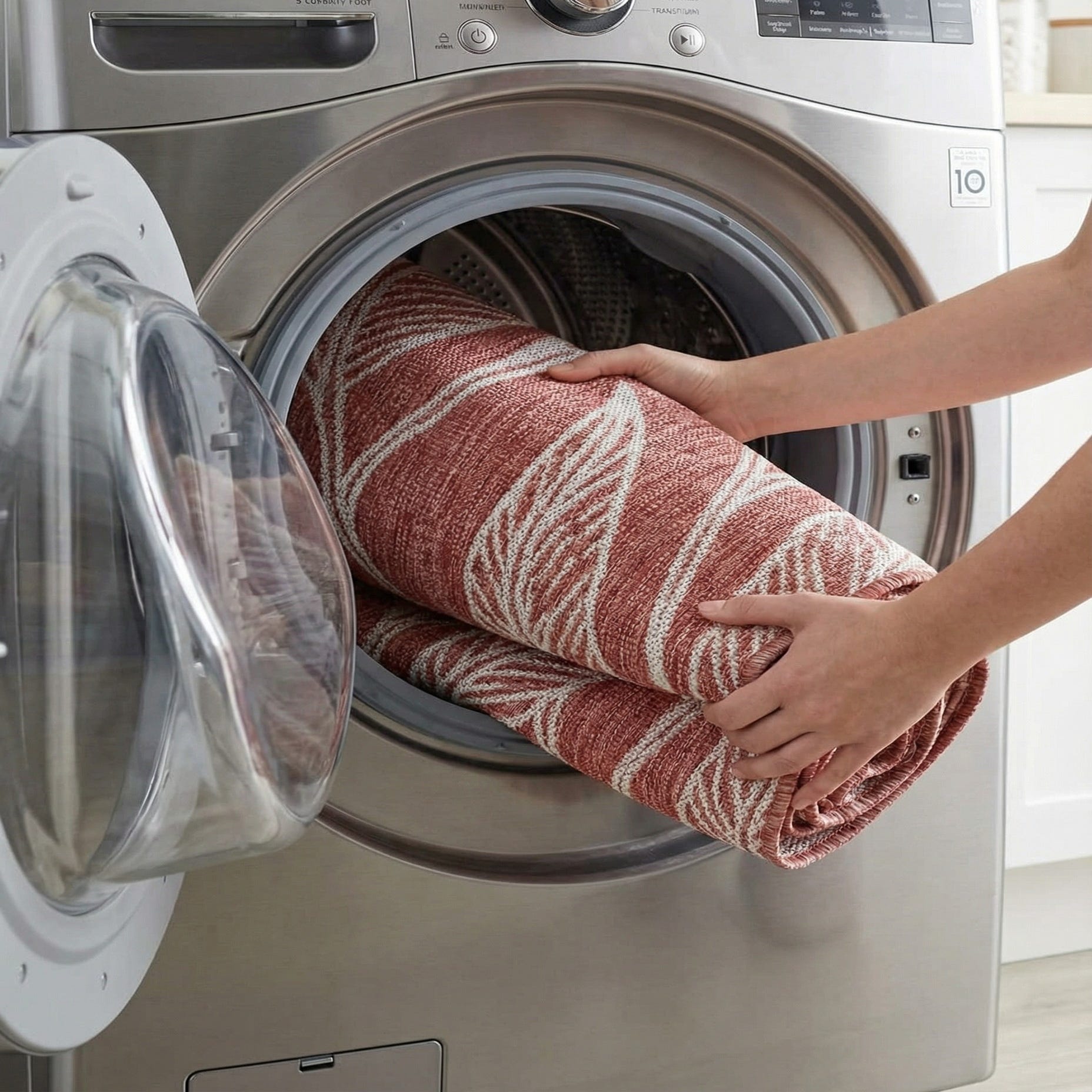 Detail image of 4' x 4'  Washable Botanical Indoor / Outdoor Round Rug