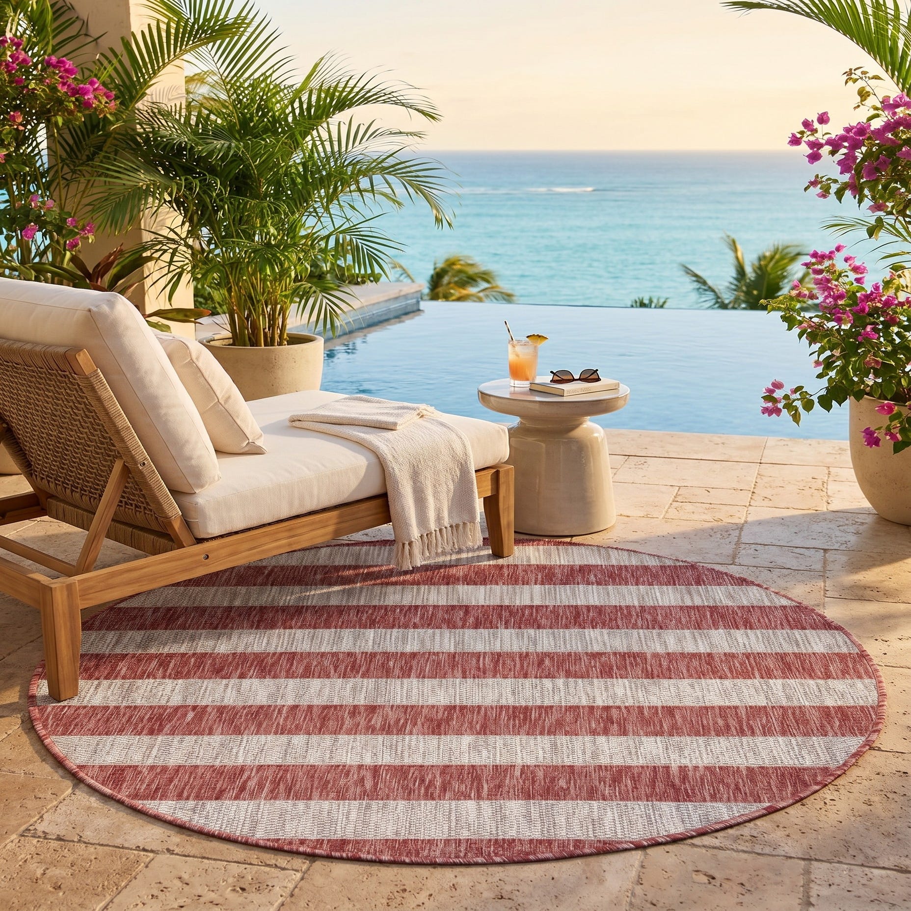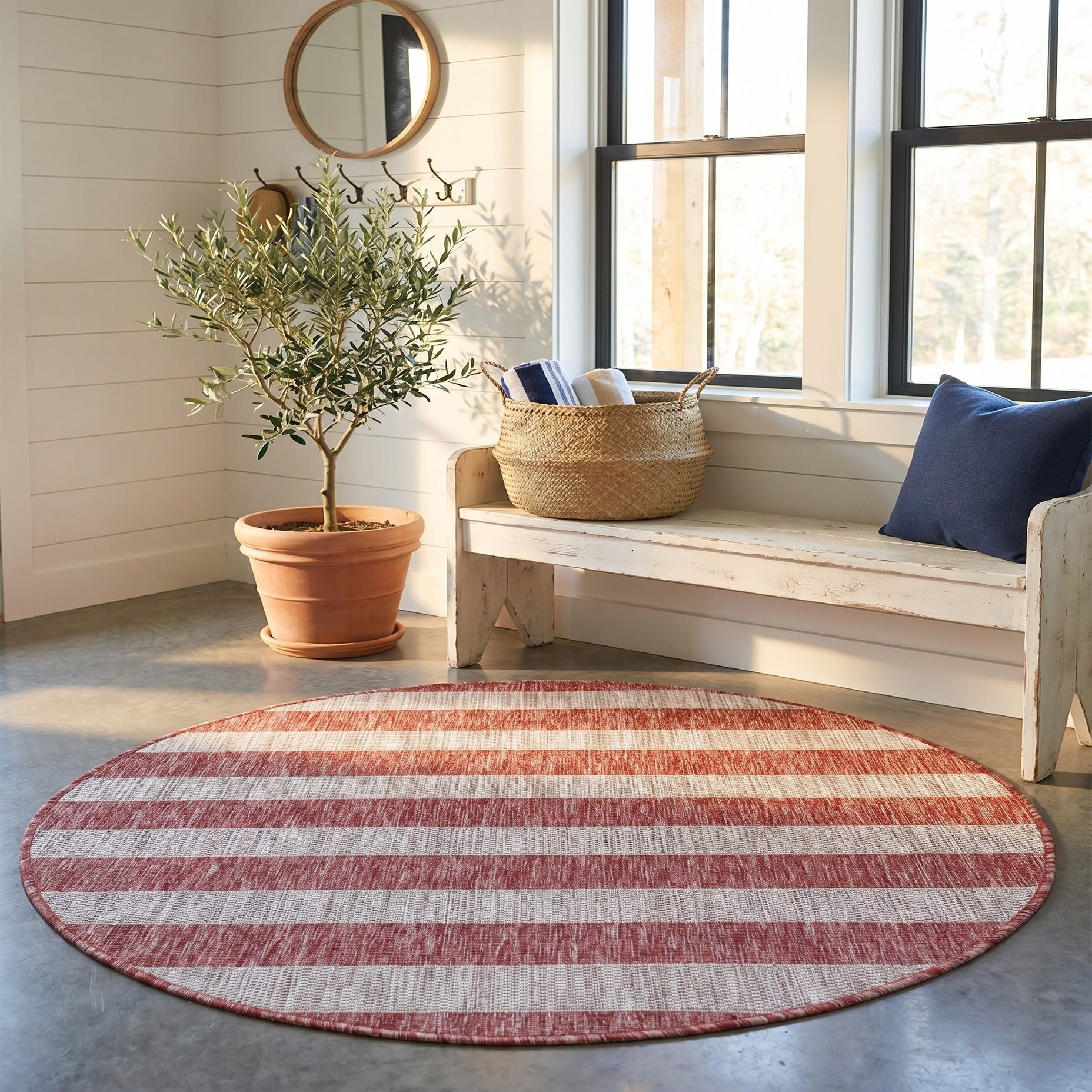 4' x 4' Easy-Clean Striped Indoor / Outdoor Round Rug
