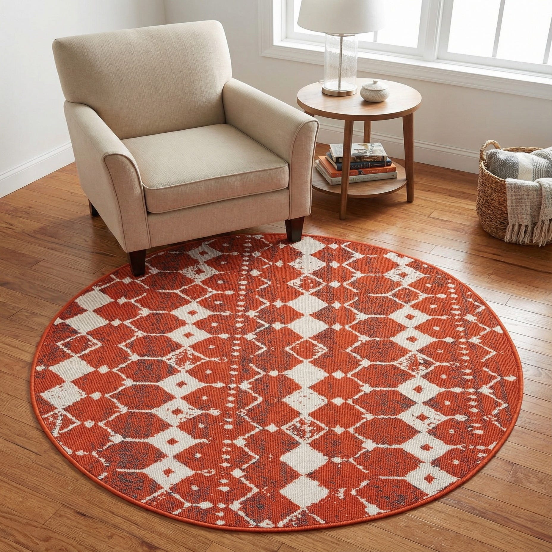4' x 4' Washable Trellis Indoor / Outdoor Round Rug