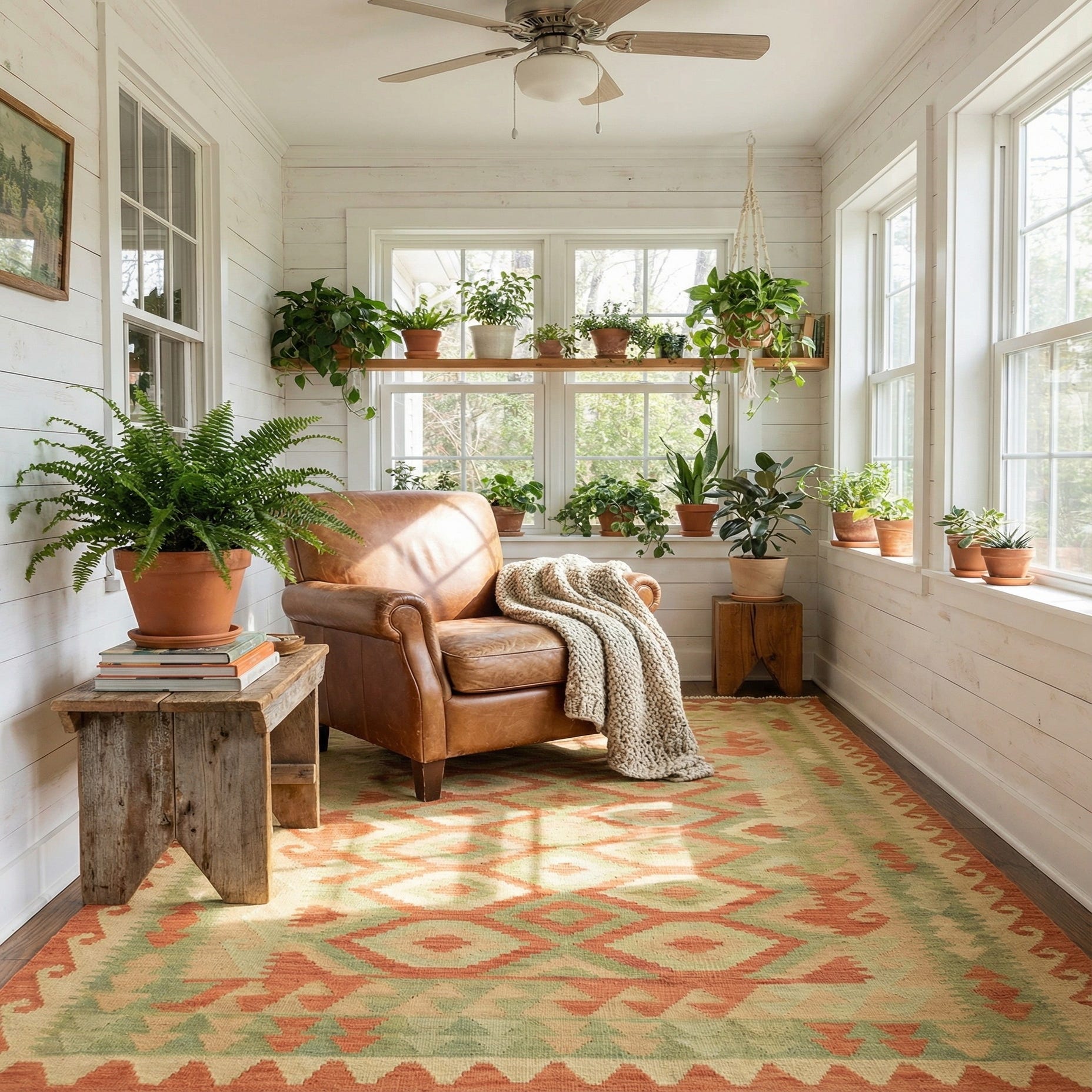 3' 9 x 6' Hand Woven Kilim Waziri Wool Rug