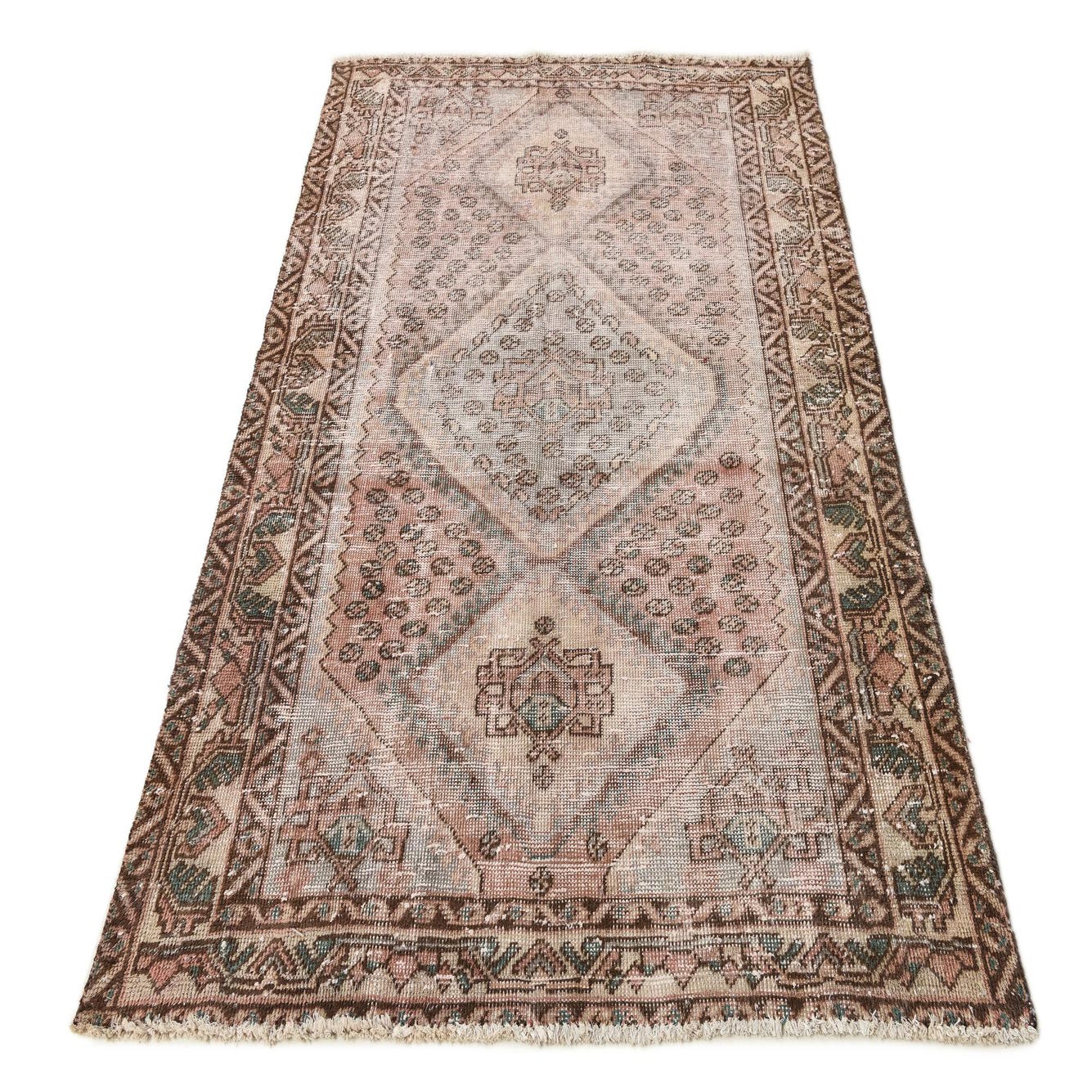 This Persian Ultra Vintage rug is an antique Persian Rug that has been washed, over-dyed, and then shaved down to a low pile. Look at the detail pictures to fully appreciate the uniqueness of this piece.