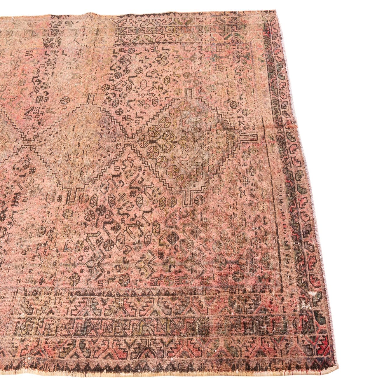 This Persian Ultra Vintage rug is an antique Persian Rug that has been washed, over-dyed, and then shaved down to a low pile. Look at the detail pictures to fully appreciate the uniqueness of this piece.