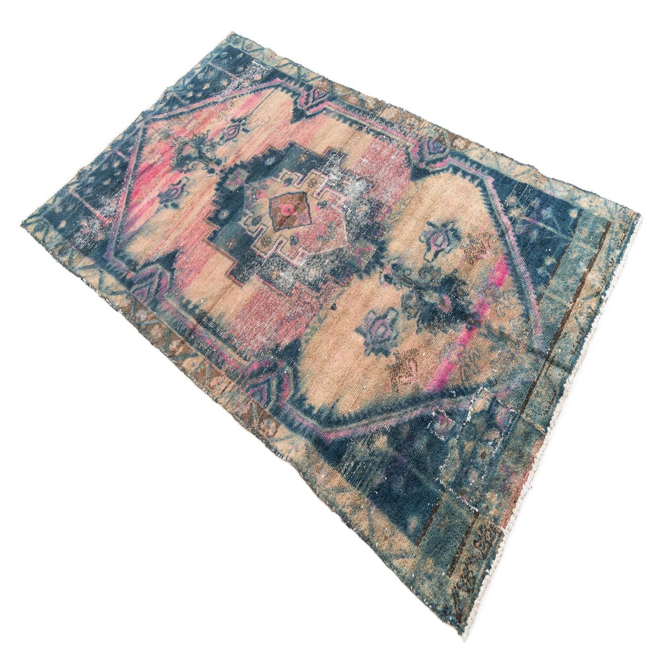 This Persian Ultra Vintage rug is an antique Persian Rug that has been washed, over-dyed, and then shaved down to a low pile. Look at the detail pictures to fully appreciate the uniqueness of this piece.