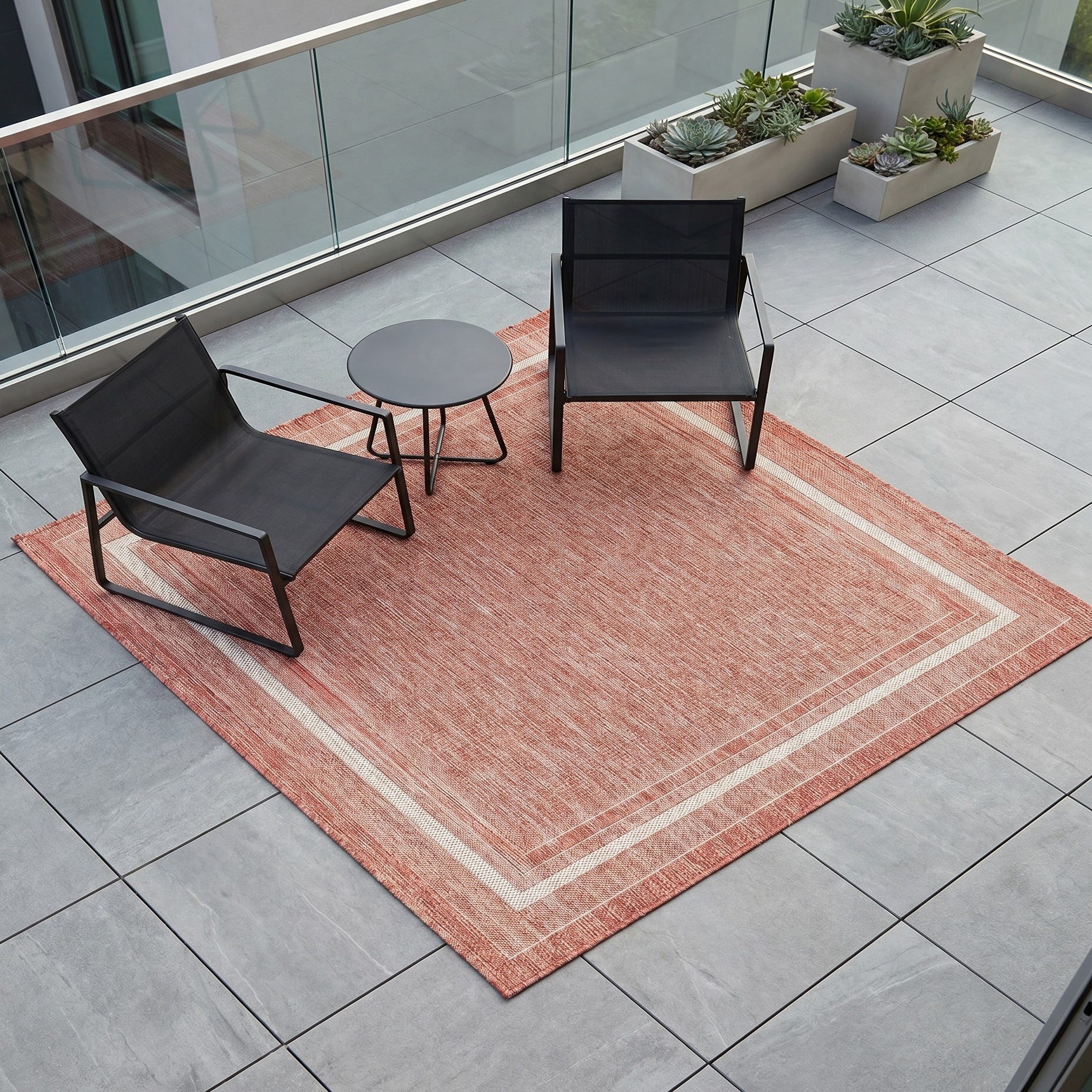 5' 3 x 5' 3 Easy-Clean Border Indoor / Outdoor Square Rug