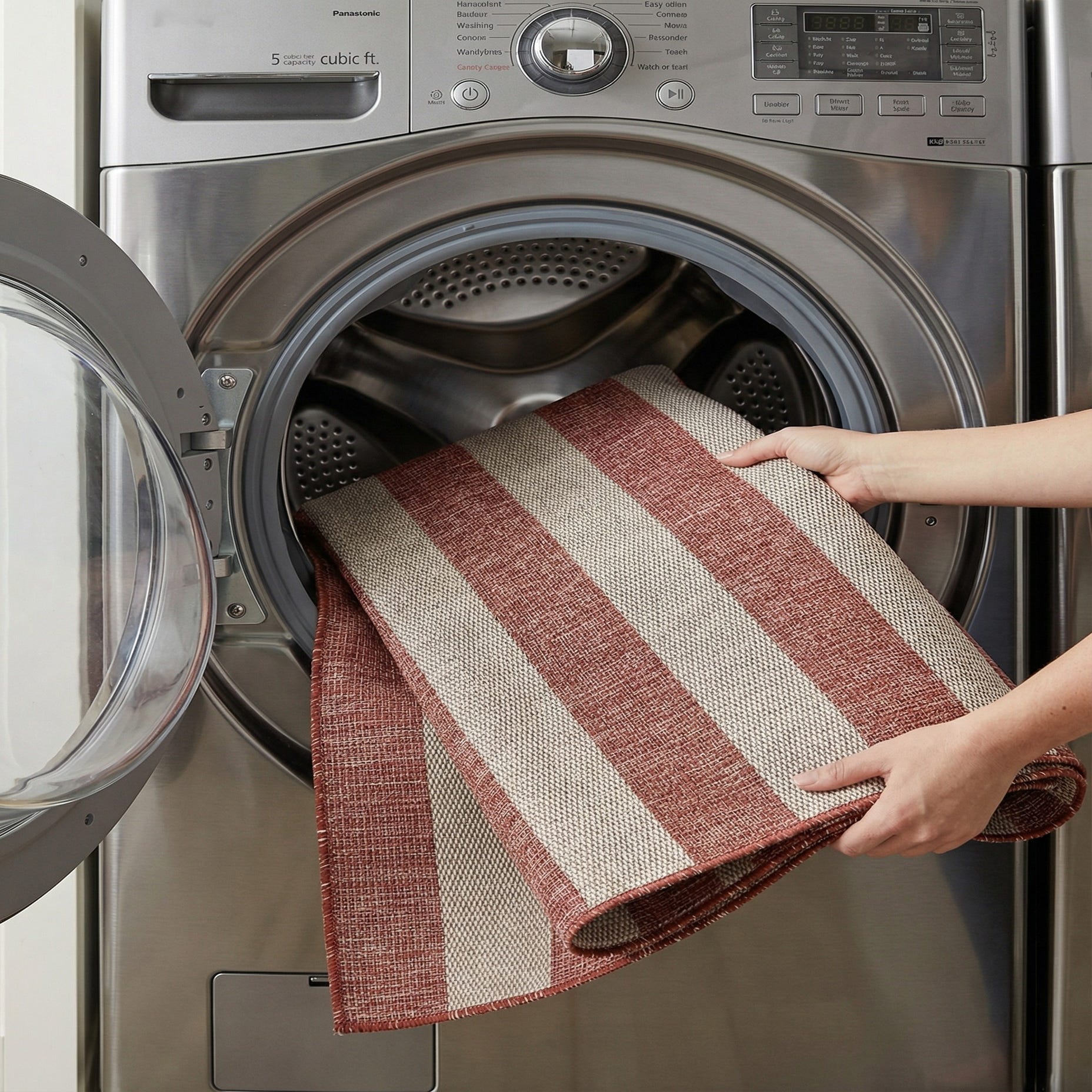 5' 3 x 5' 3 Washable Striped Indoor / Outdoor Square Rug
