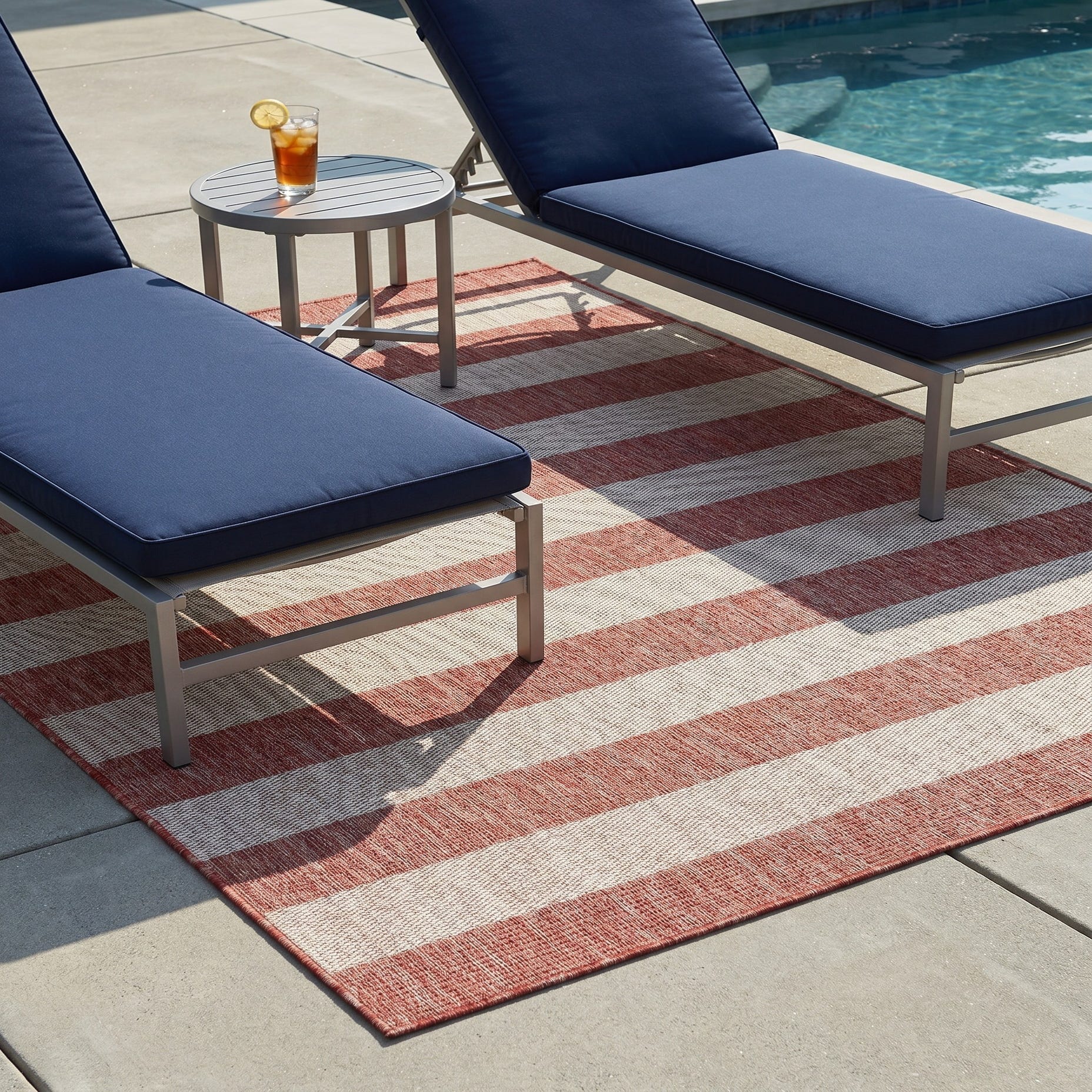 5' 3 x 7' Easy-Clean Striped Indoor / Outdoor Rug