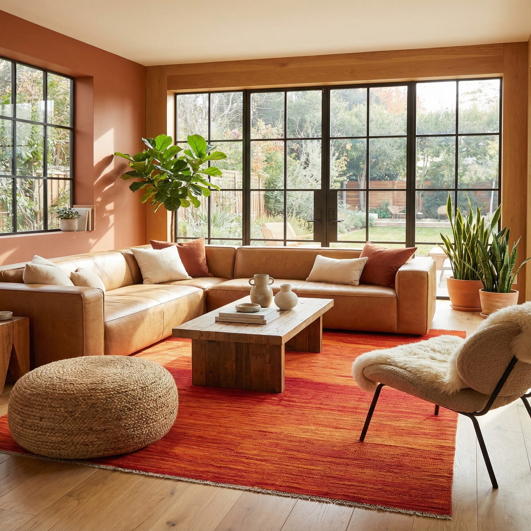 Primary color is Rust Red. Colors in this rug include: Rust Red, Orange.
