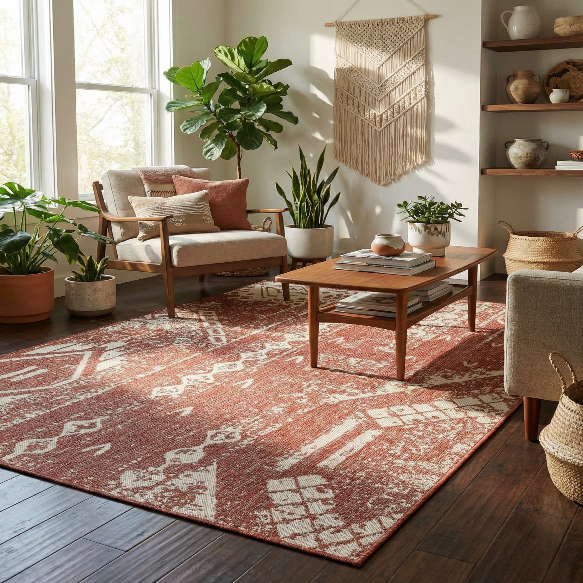 5' 3 x 8' Washable Bohemian Indoor / Outdoor Rug