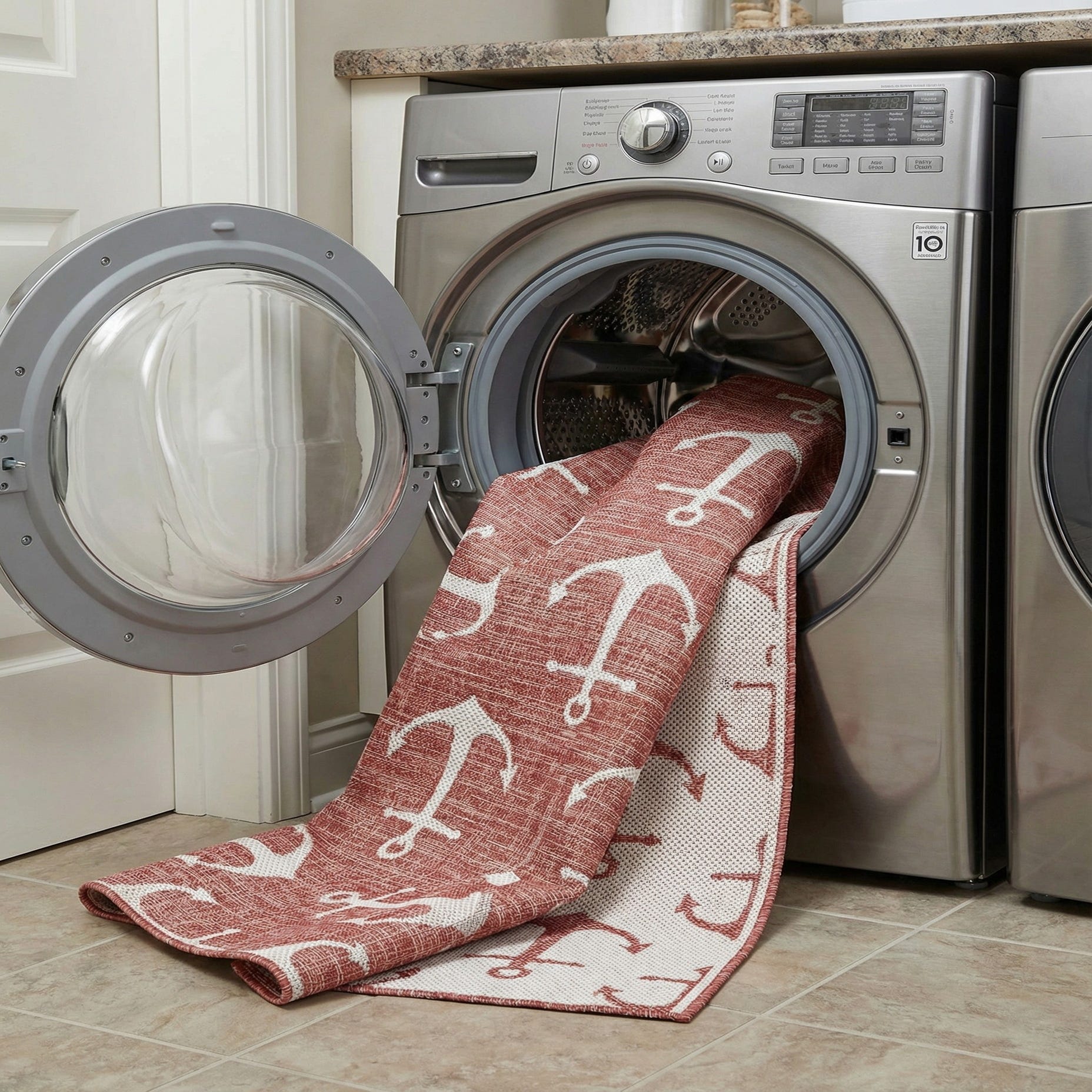 Primary image 5' 3 x 8'  Washable Coastal Indoor / Outdoor Rug