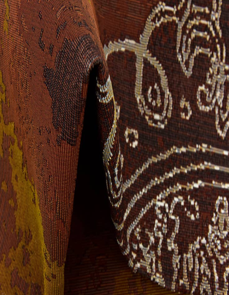 Primary color is Rust Red. Colors in this rug include: Rust Red, Gold, Gray, Silver.