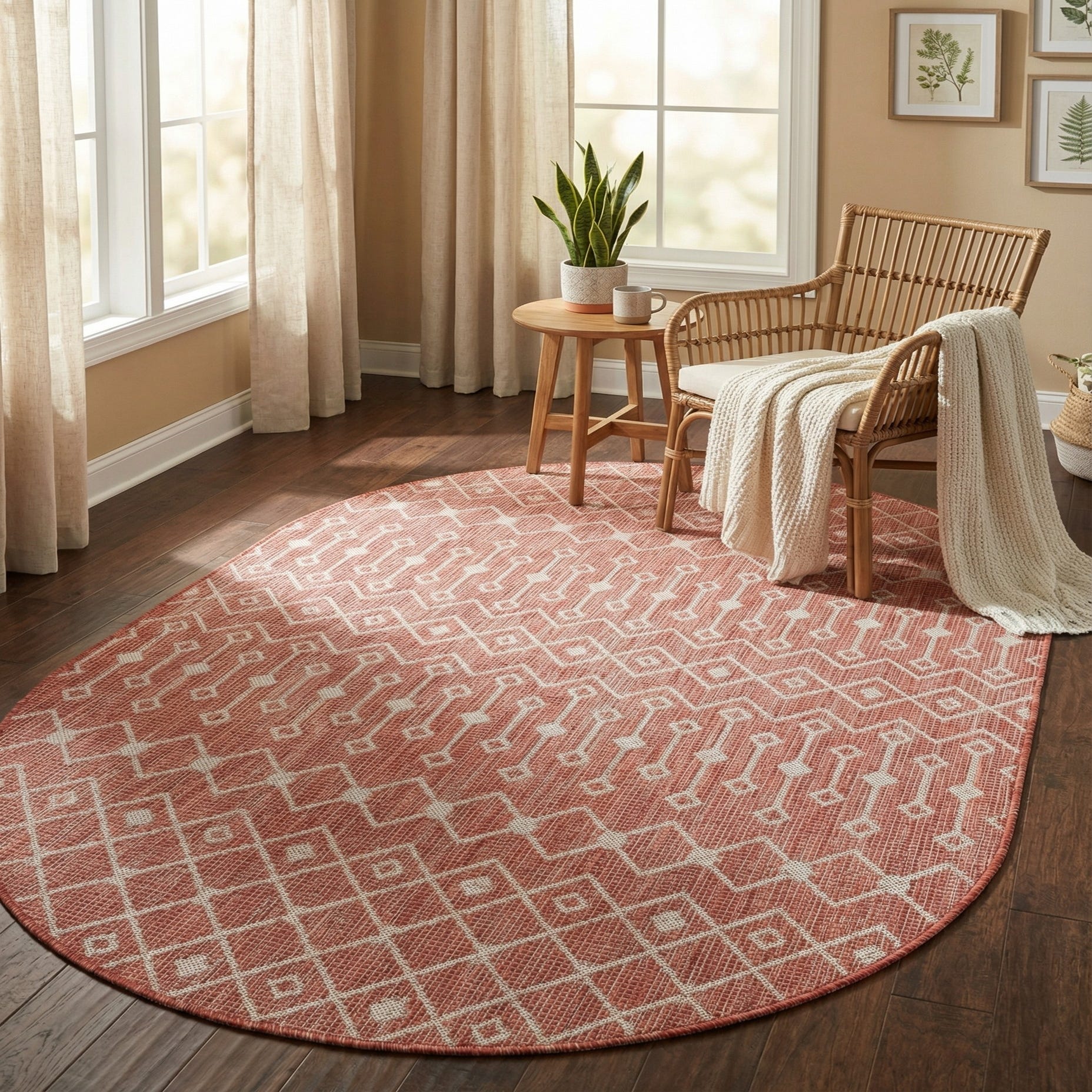 5' 3 x 8' Washable Trellis Indoor / Outdoor Oval Rug