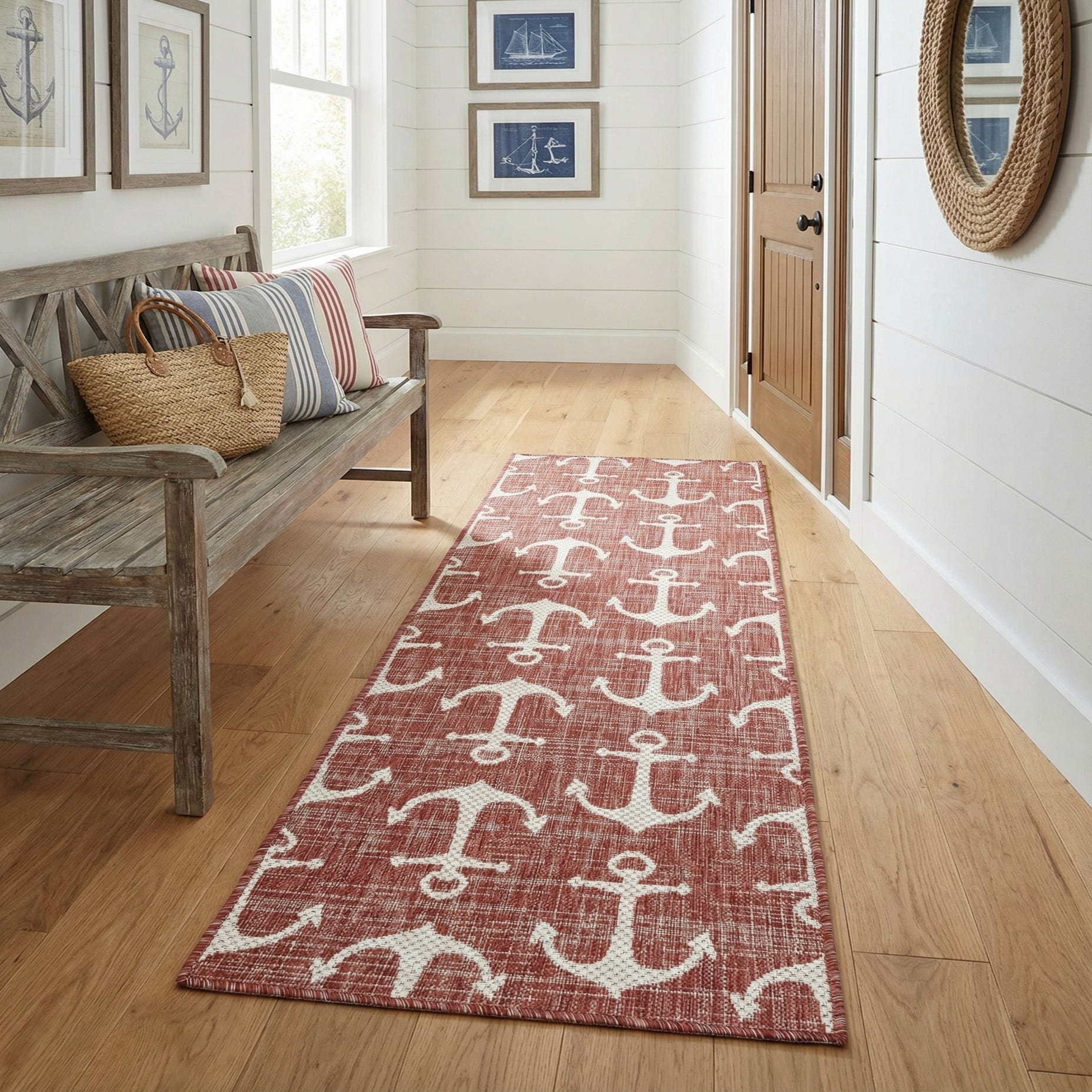 2' x 6' Washable Coastal Indoor / Outdoor Runner Rug