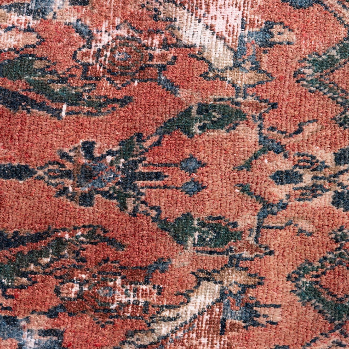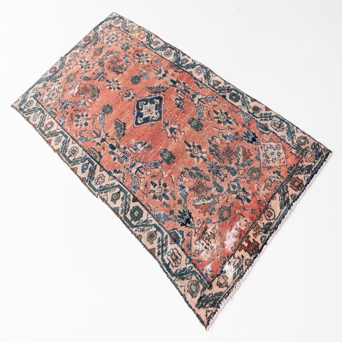 This Persian Ultra Vintage rug is an antique Persian Rug that has been washed, over-dyed, and then shaved down to a low pile. Look at the detail pictures to fully appreciate the uniqueness of this piece.