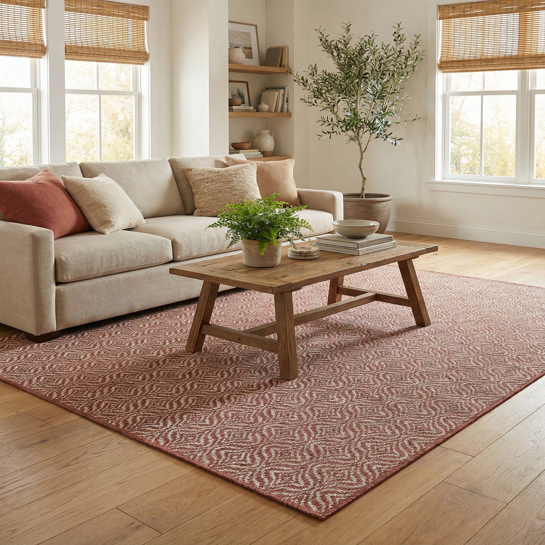 Primary color is Rust Red. Colors in this rug include: Rust Red, Ivory.