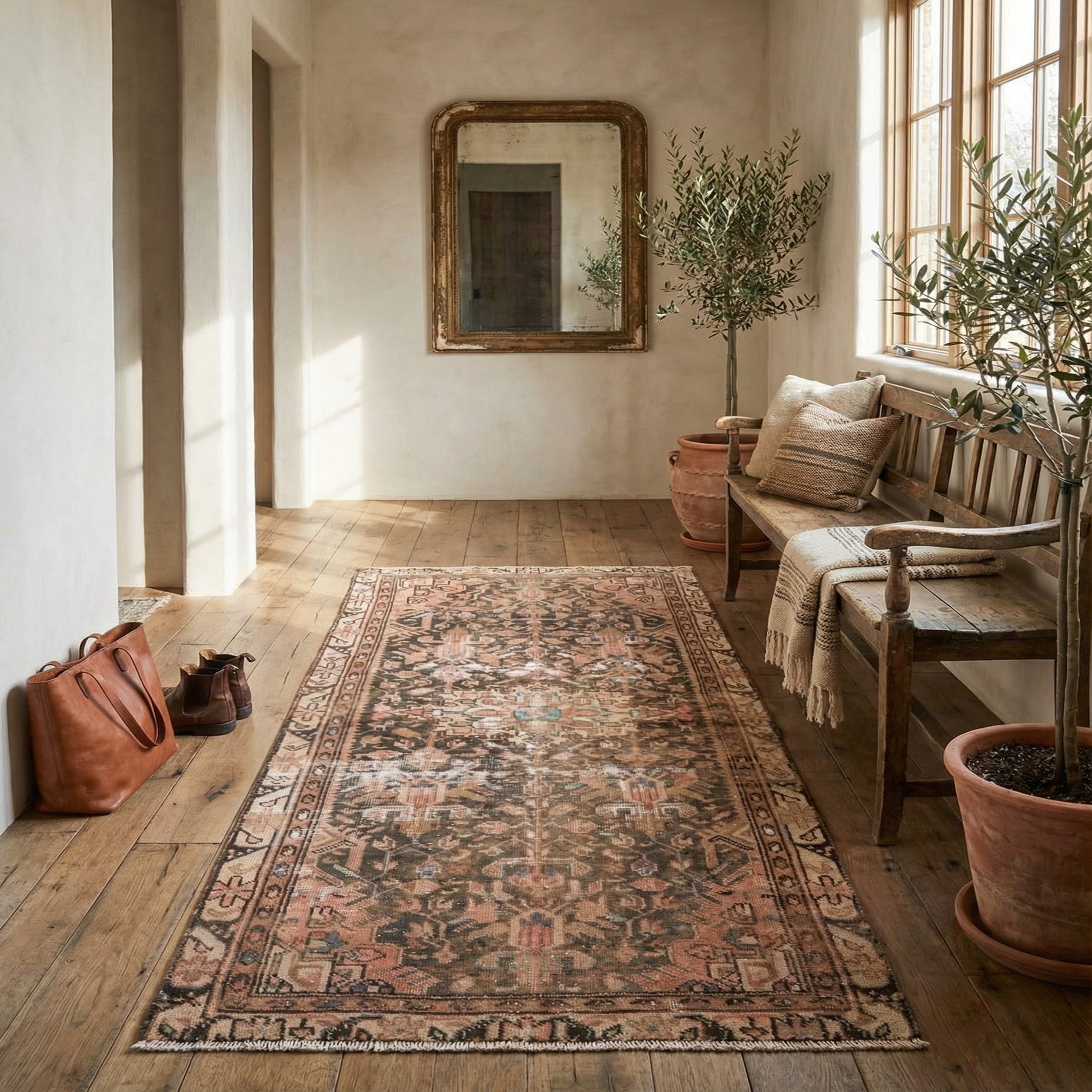 This Persian Ultra Vintage rug is an antique Persian Rug that has been washed, over-dyed, and then shaved down to a low pile. Look at the detail pictures to fully appreciate the uniqueness of this piece.