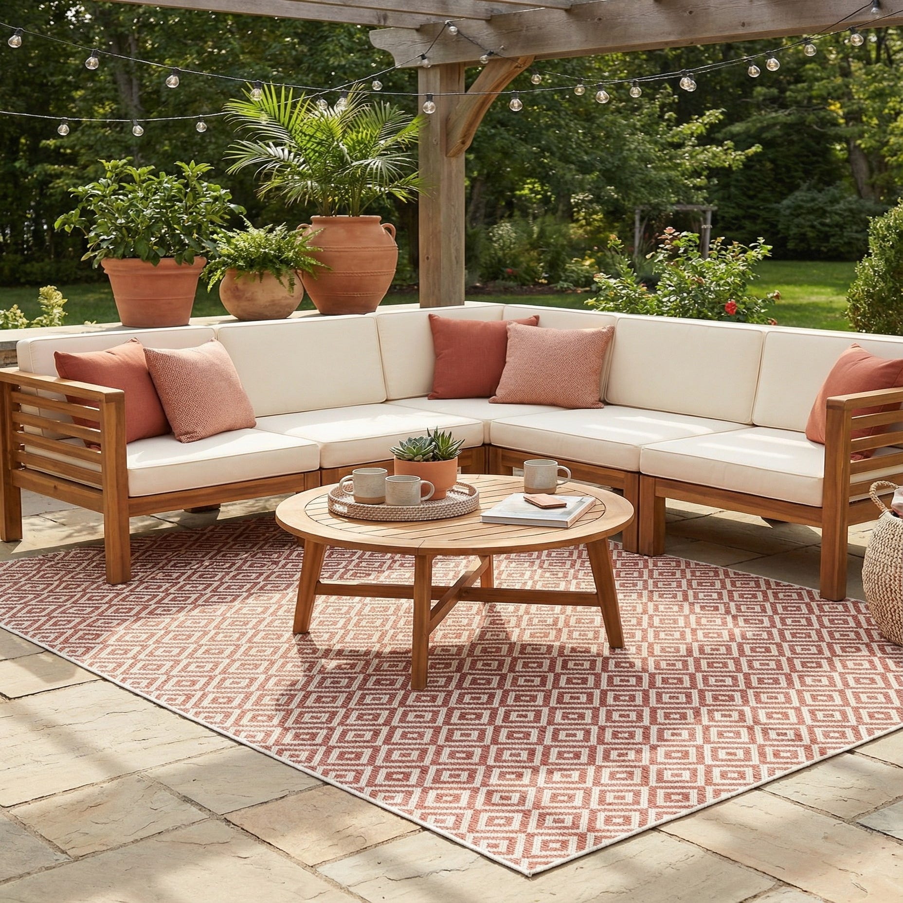 Primary color is Rust Red. Colors in this rug include: Rust Red, Ivory.