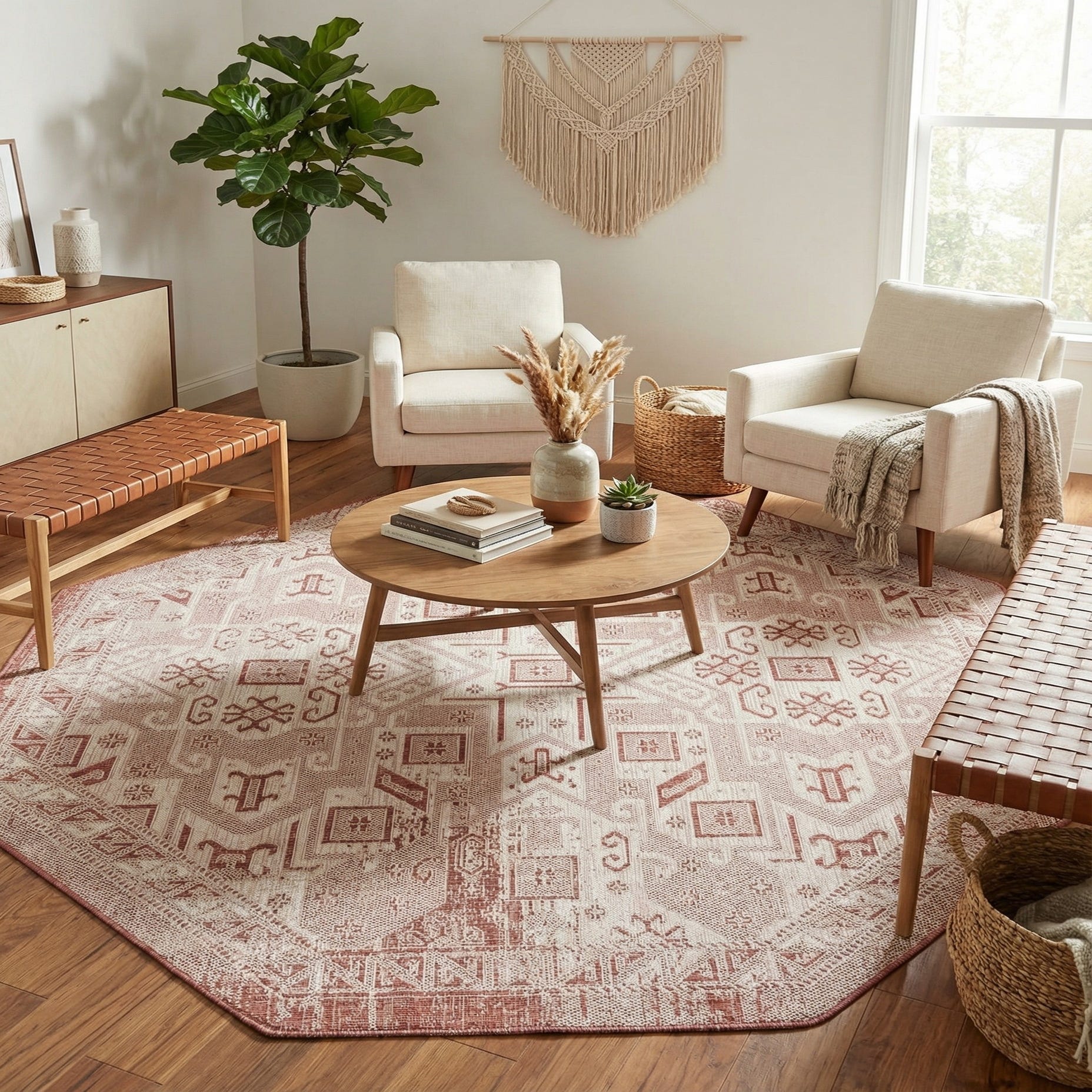 Primary image 7' 10 x 7' 10  Washable Aztec Indoor / Outdoor Octagon Rug