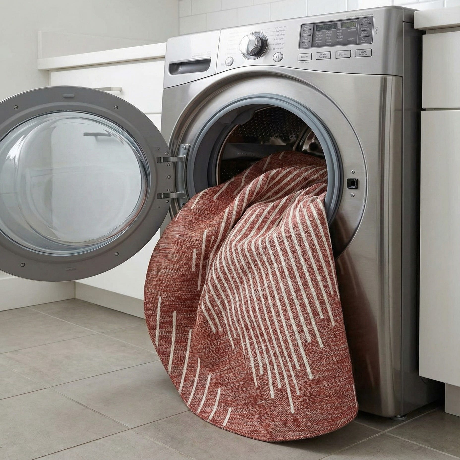 7' 10 x 7' 10 Washable Modern Indoor / Outdoor Round Rug