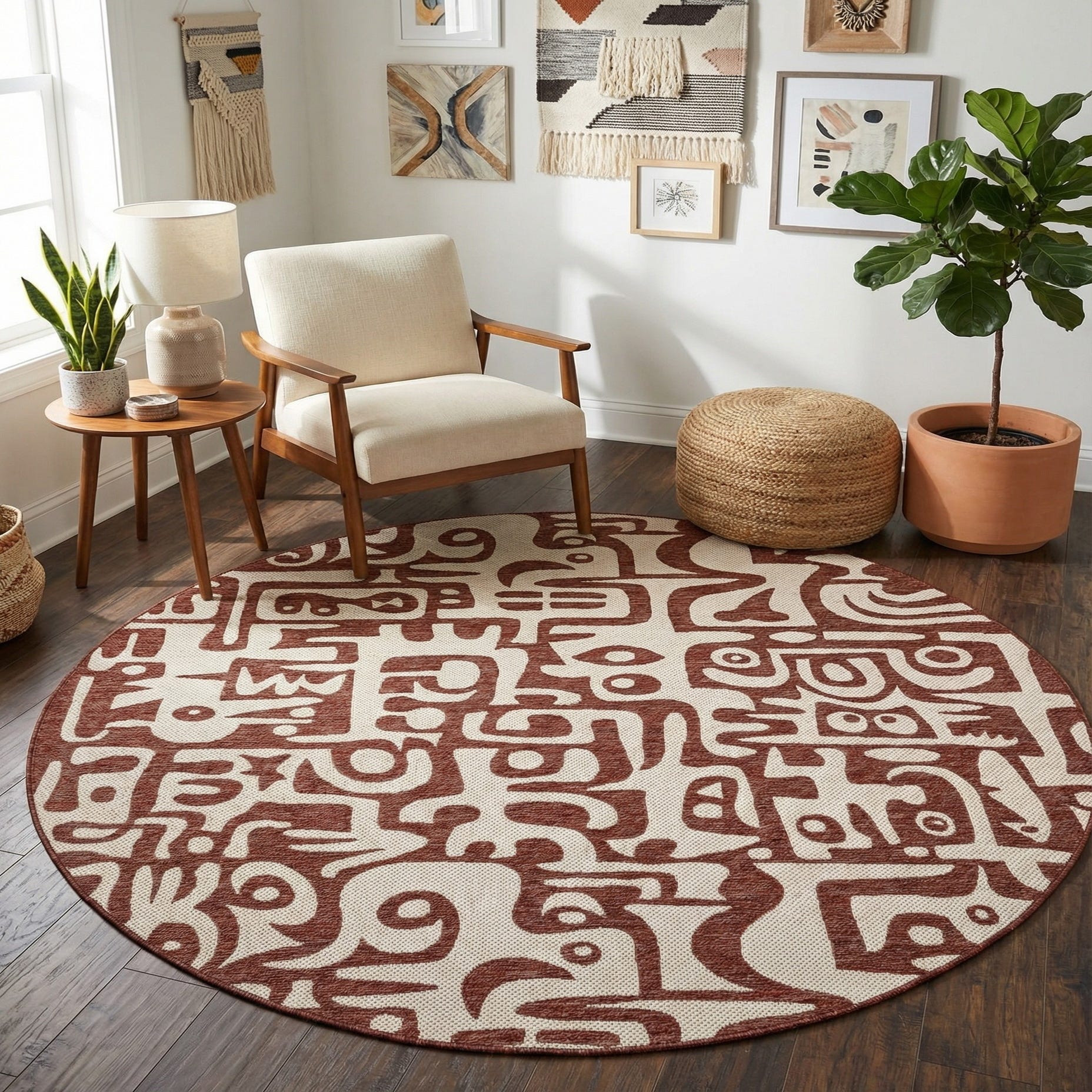 Primary image 7' 10 x 7' 10  Washable Modern Indoor / Outdoor Round Rug