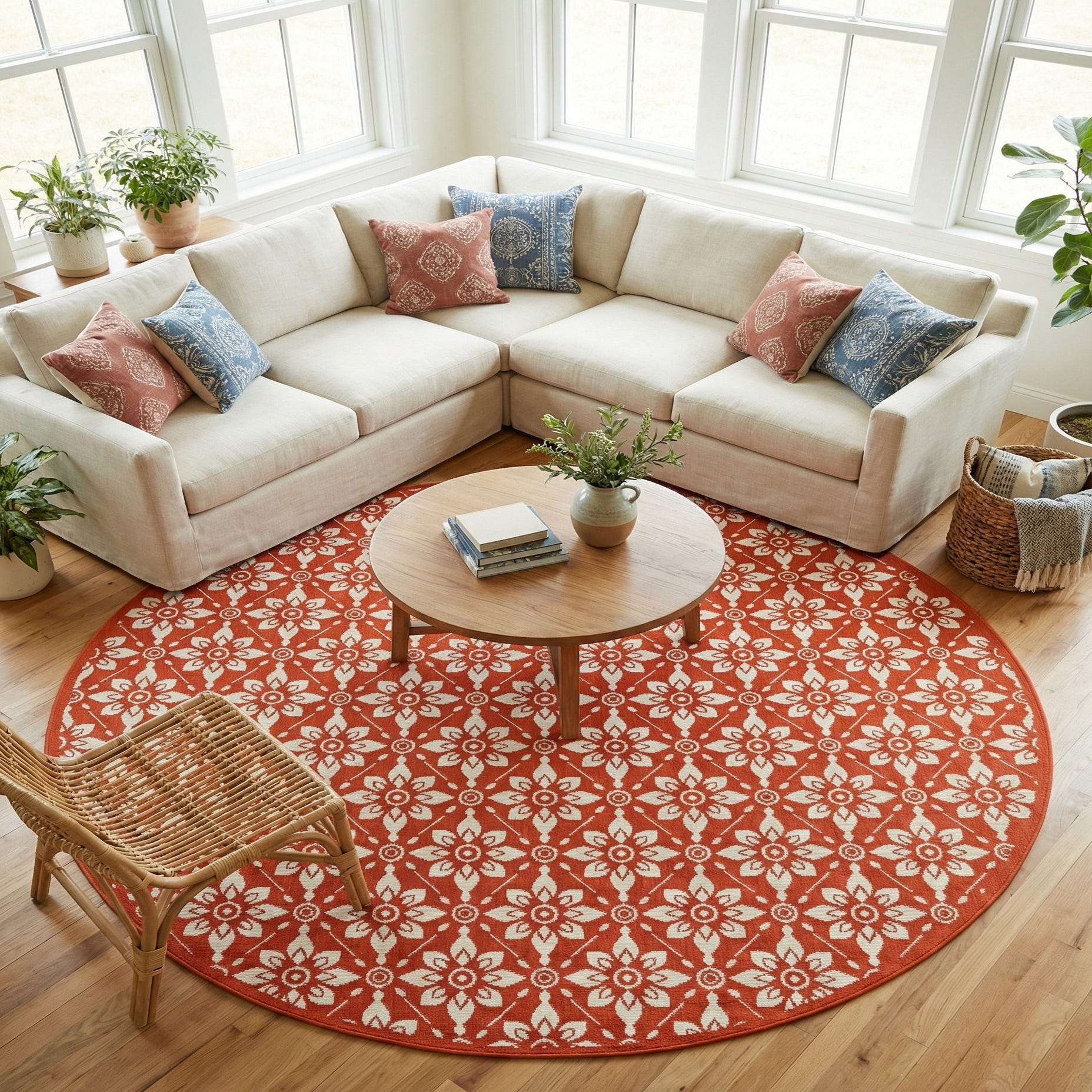 7' 10 x 7' 10 Washable Trellis Indoor / Outdoor Round Rug