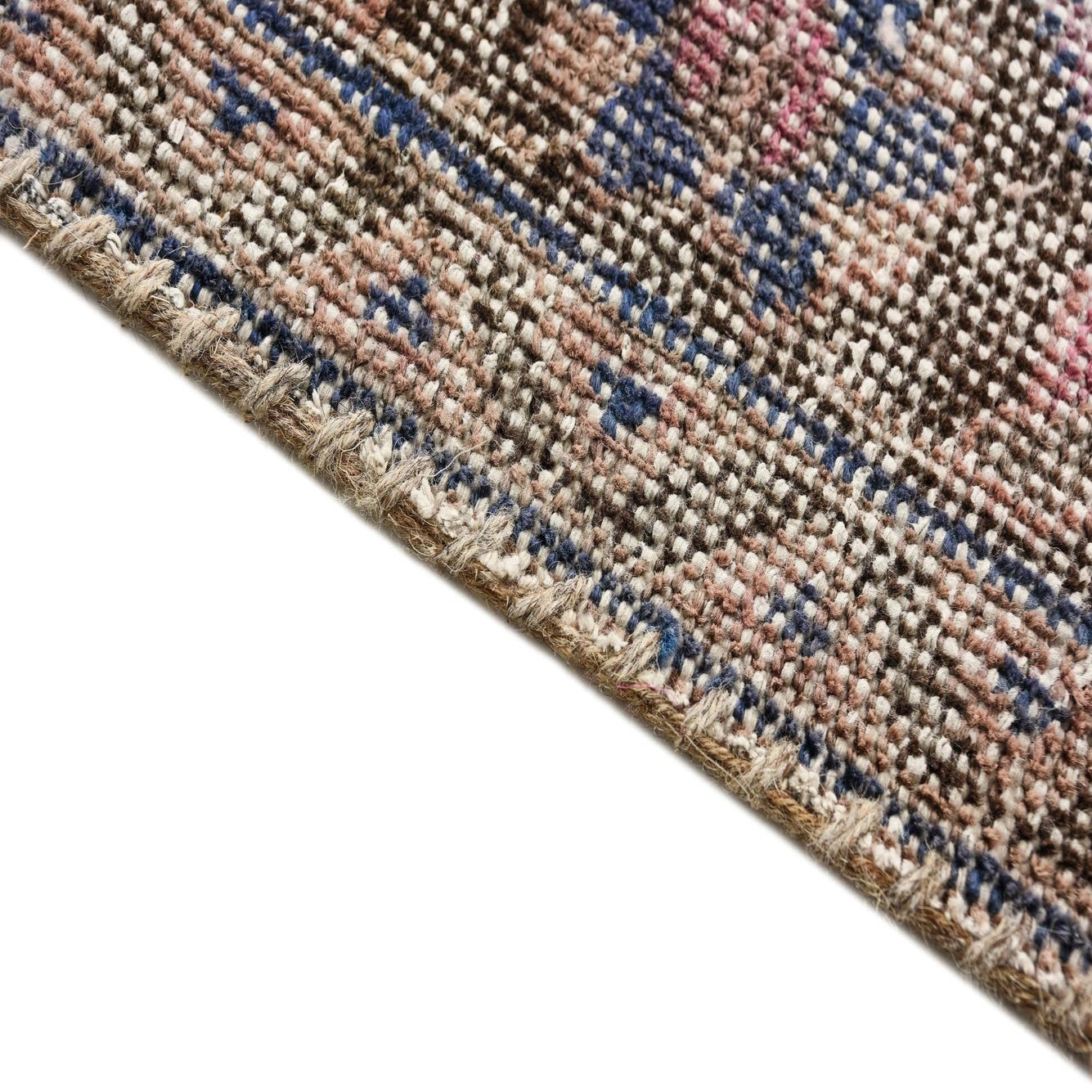 Primary color is Rust Red. Colors in this rug include: Rust Red, Brown, Navy Blue, Pink.