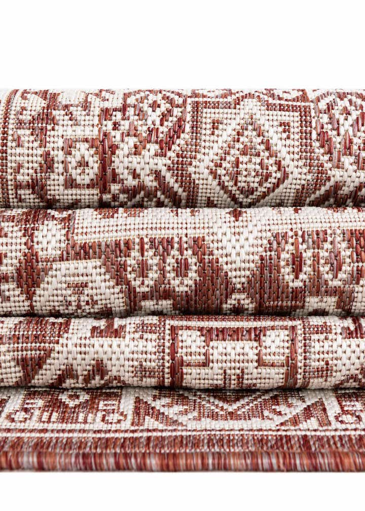 Primary color is Rust Red. Colors in this rug include: Rust Red, Ivory.