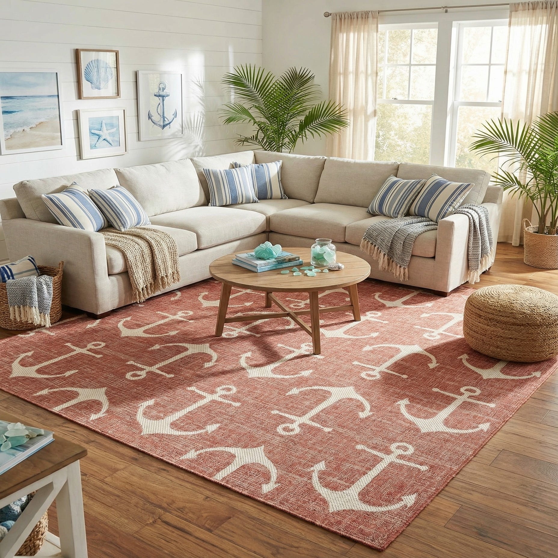 7' 10 x 7' 10 Washable Coastal Indoor / Outdoor Square Rug
