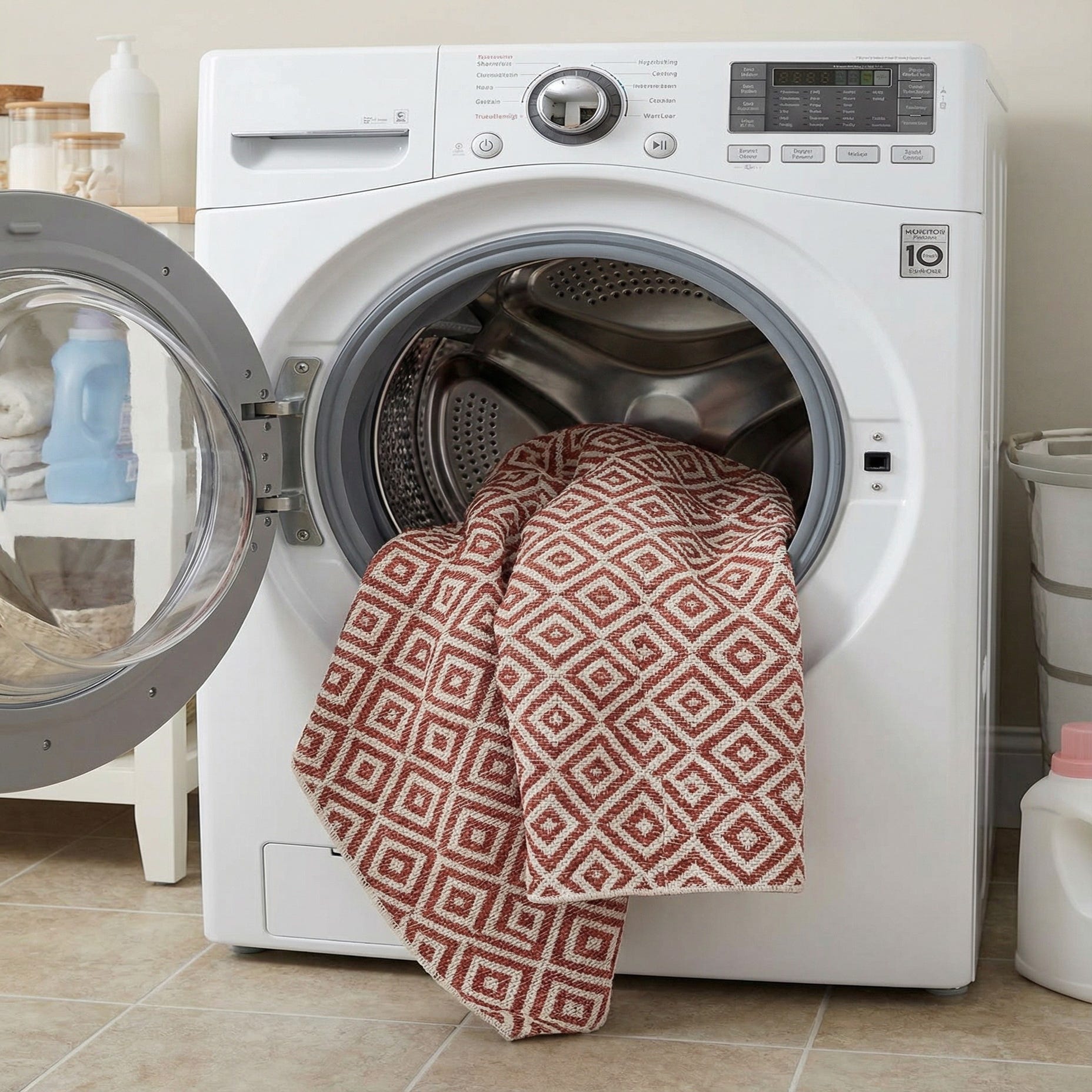 Primary color is Rust Red. Colors in this rug include: Rust Red, Ivory.