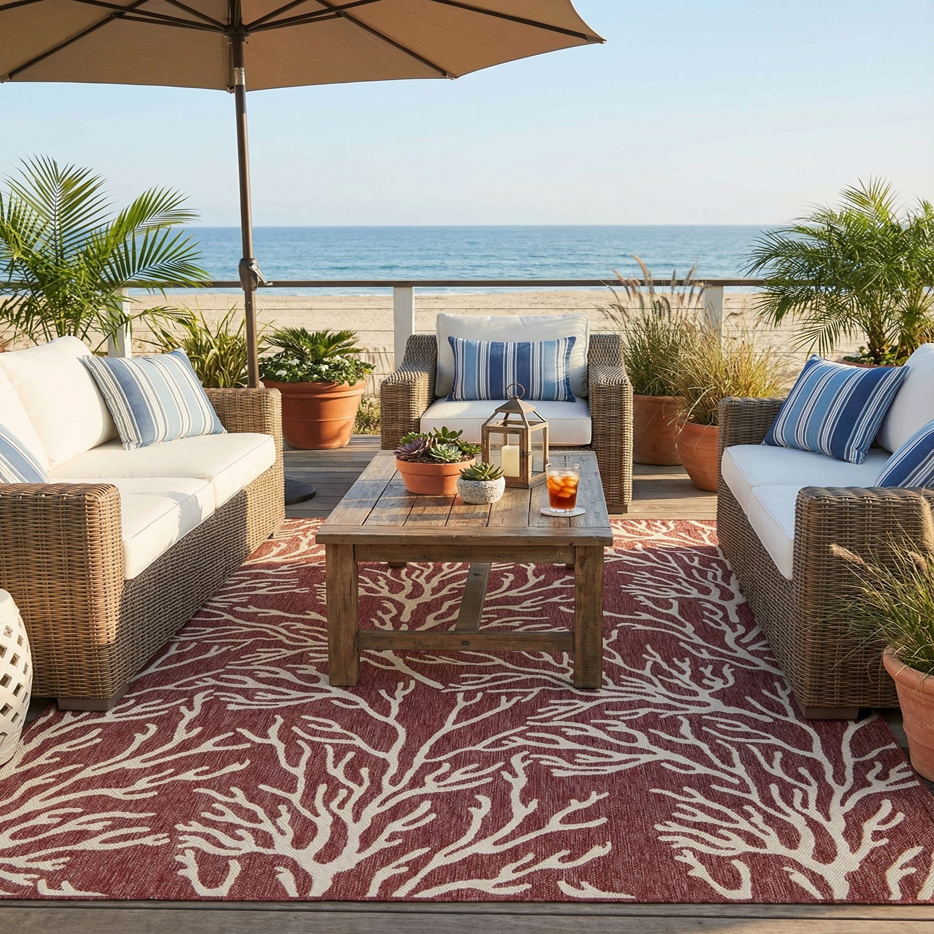 7' 10 x 10' Washable Coastal Indoor / Outdoor Rug