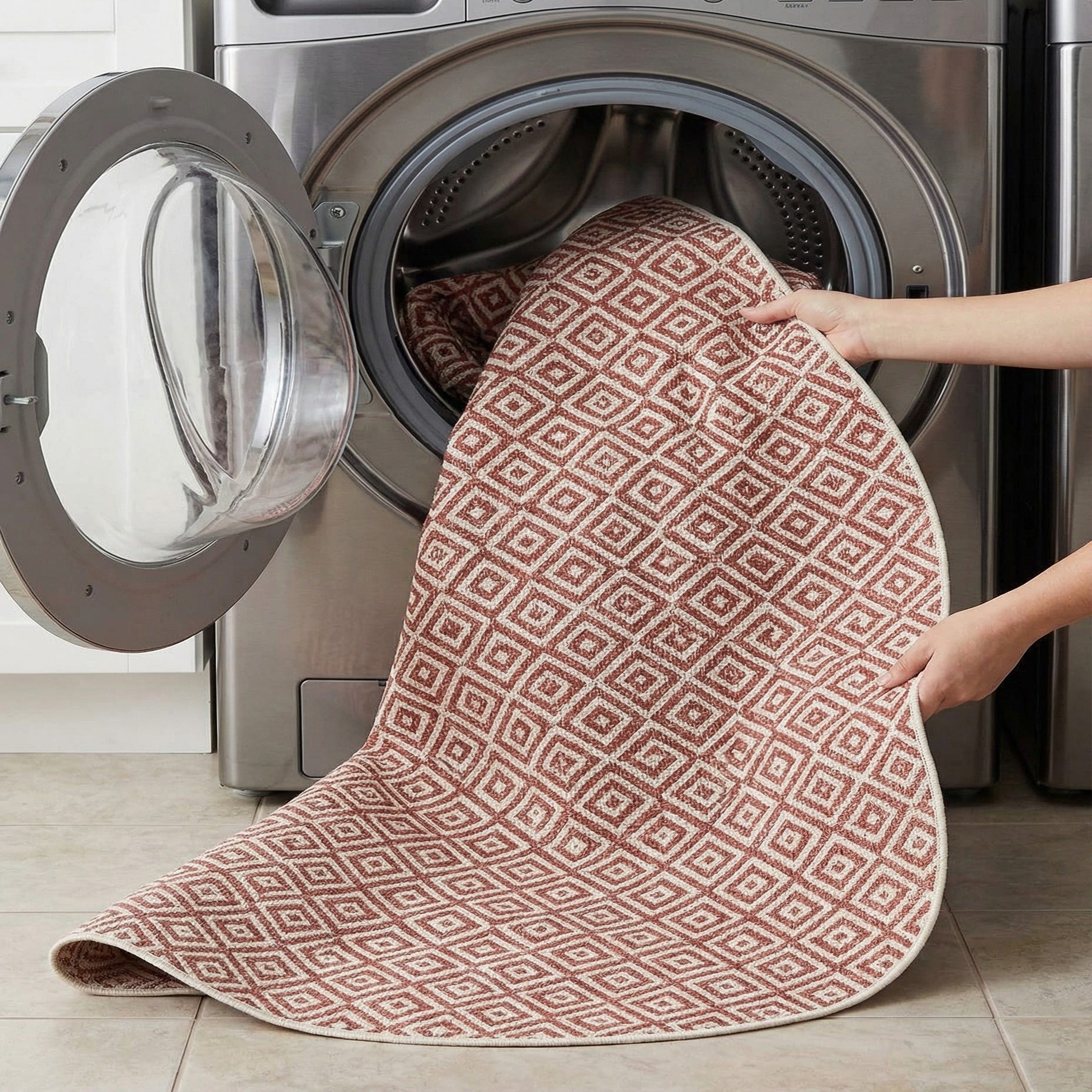 Primary color is Rust Red. Colors in this rug include: Rust Red, Ivory.