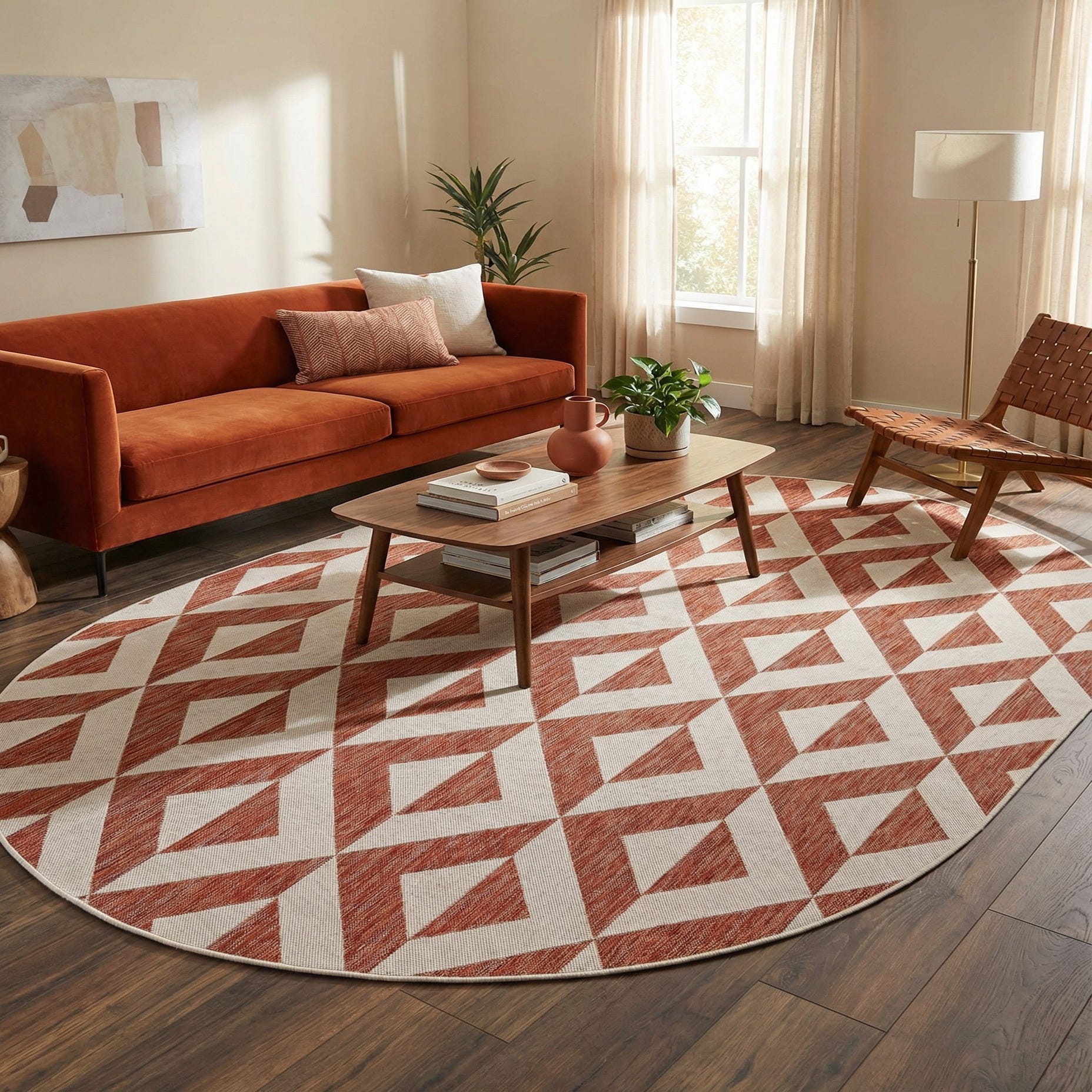 Primary color is Rust Red. Colors in this rug include: Rust Red, Ivory.