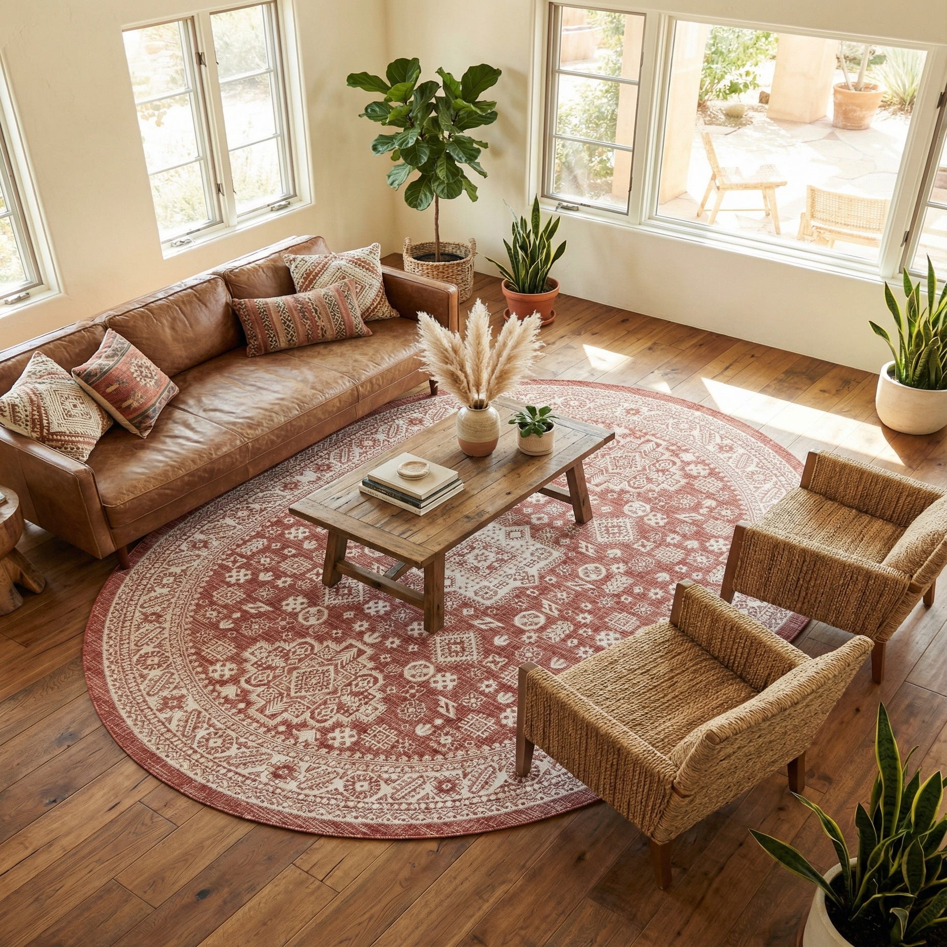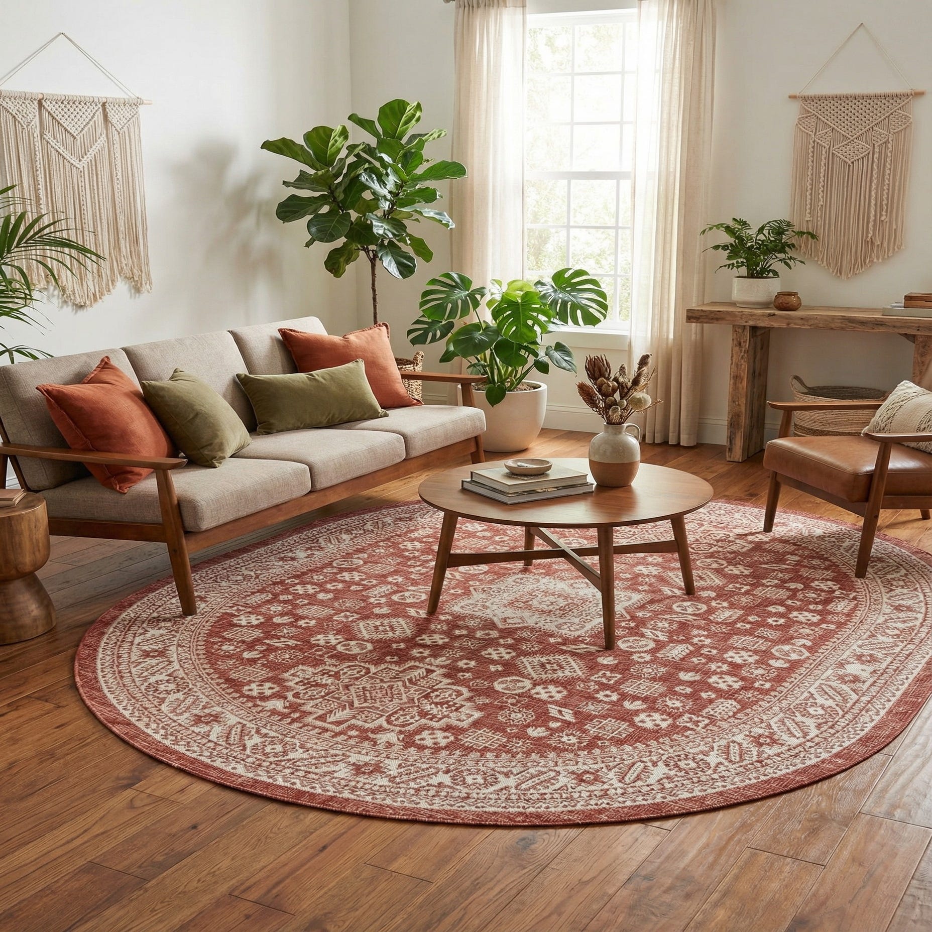 Primary image 7' 10 x 10'  Washable Aztec Indoor / Outdoor Oval Rug