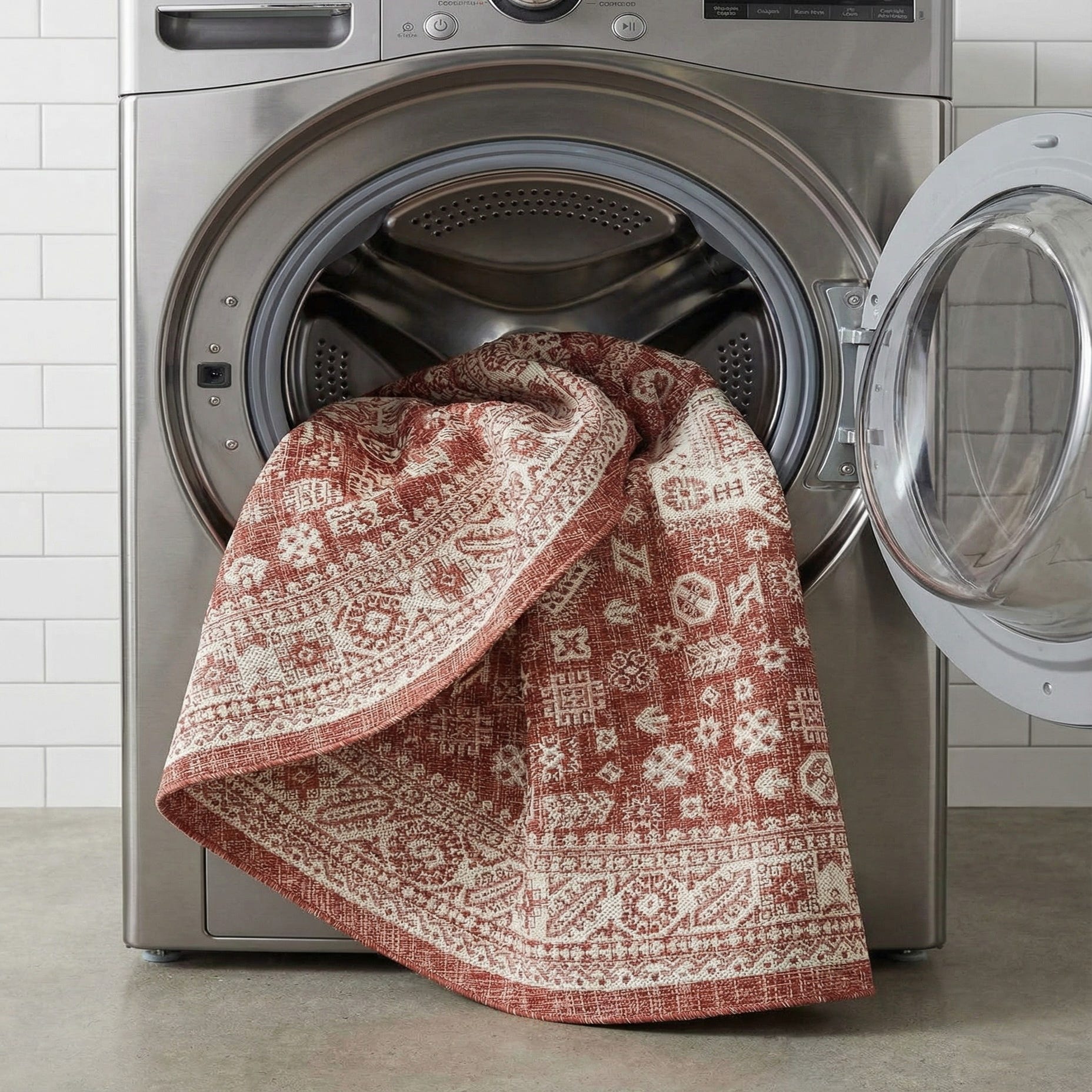 Detail image of 7' 10 x 10'  Washable Aztec Indoor / Outdoor Oval Rug
